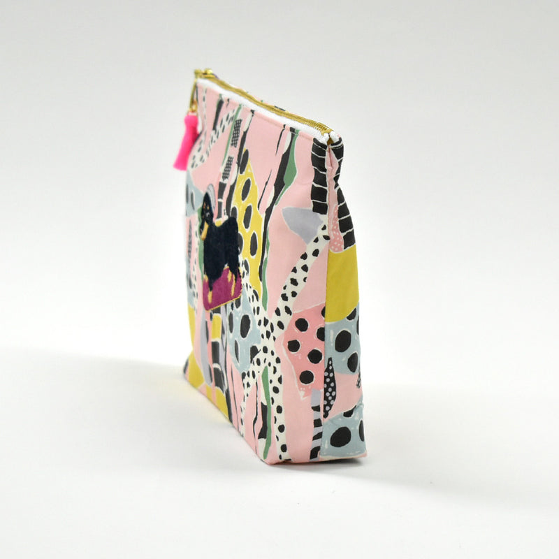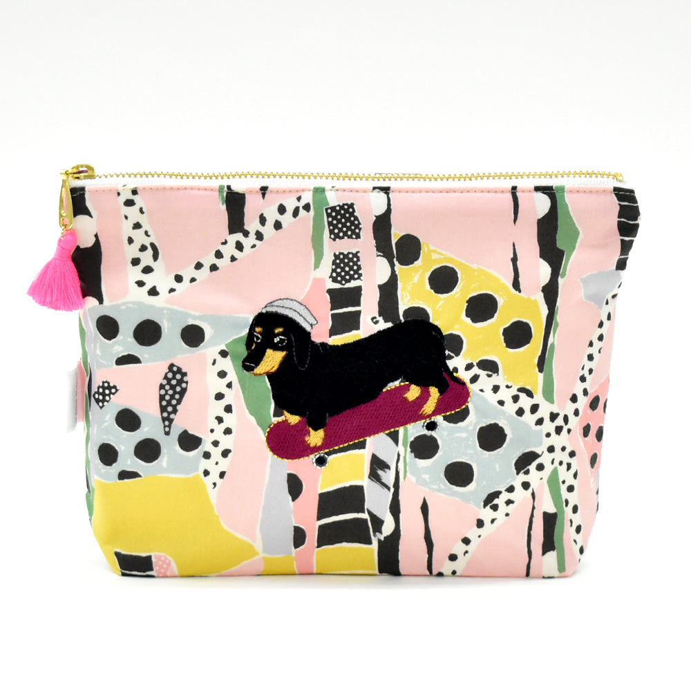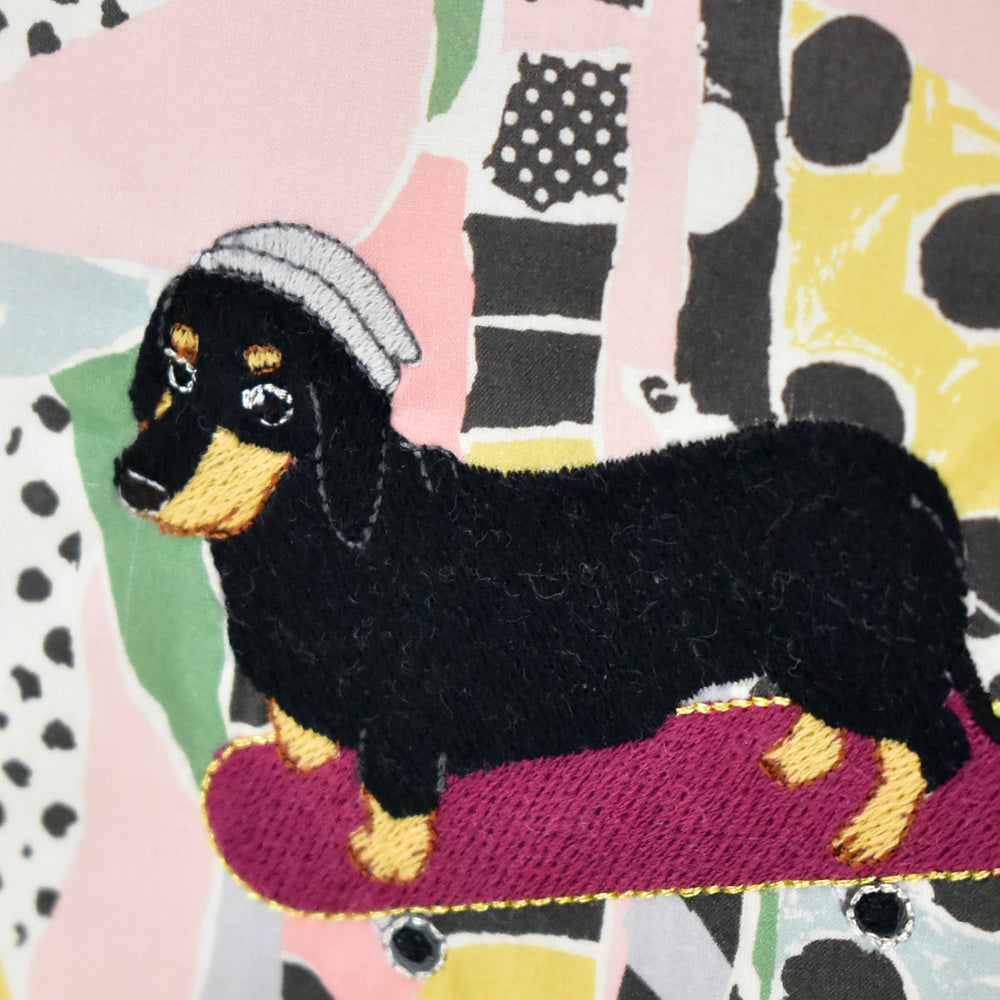 生き生きとした表情や仕草がかわいいワンちゃんの刺繍ポーチ。