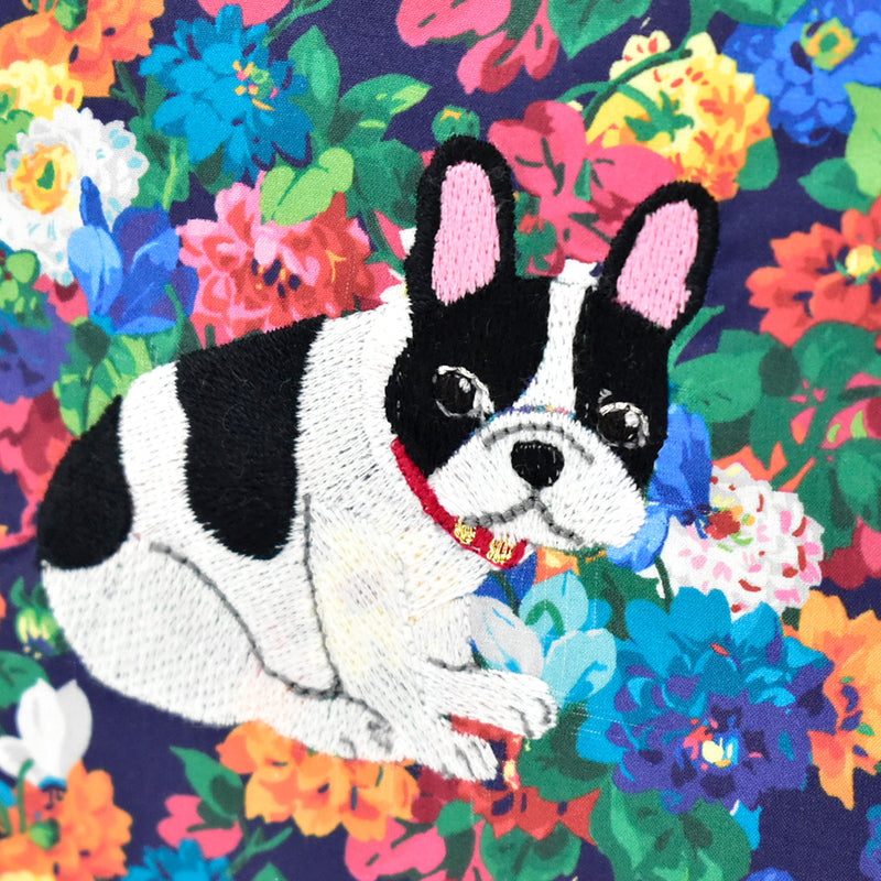 生き生きとした表情や仕草がかわいいワンちゃんの刺繍ポーチ。