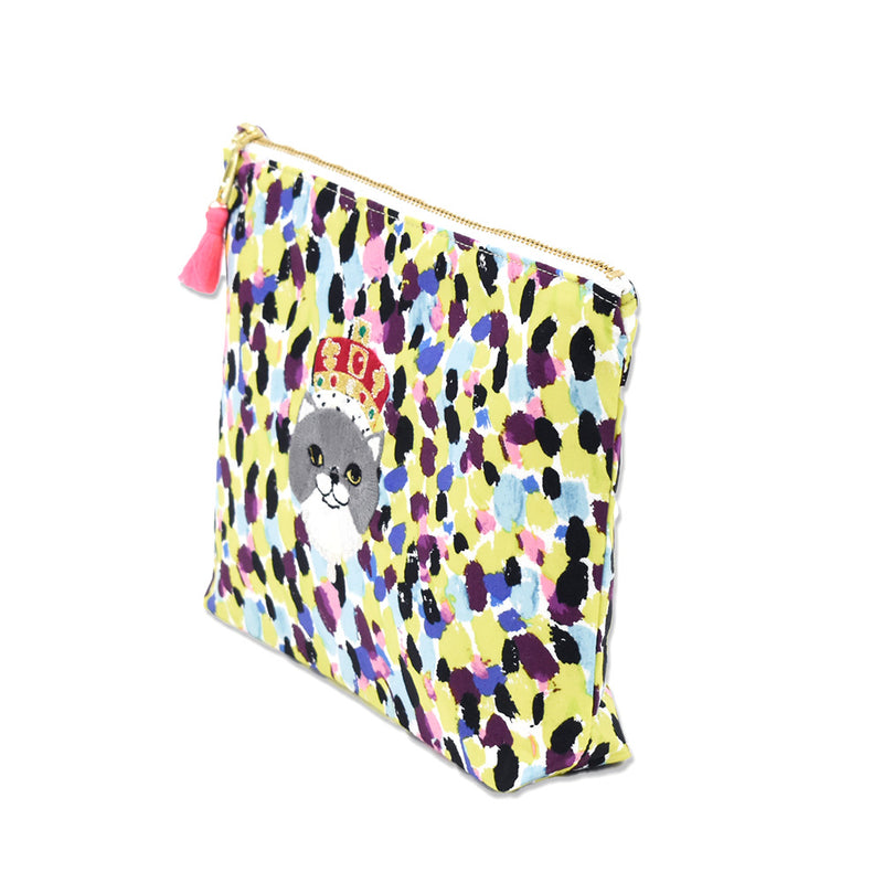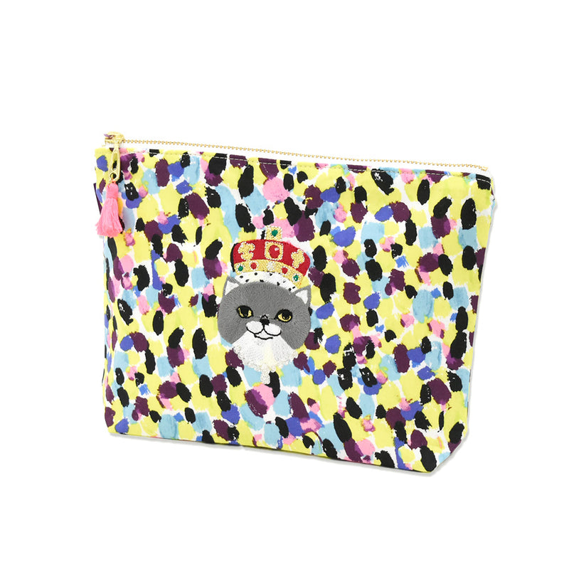生き生きとした表情や仕草がかわいい猫ちゃんの刺繍ポーチ。