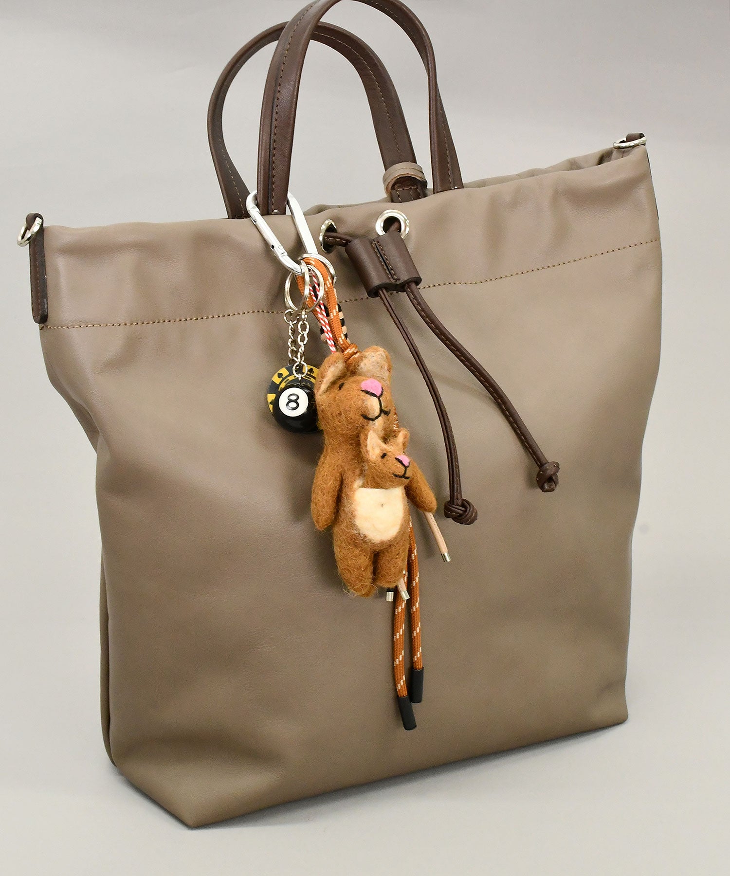 ウールフェルトの愛らしいアニマルぬいぐるみがバッグチャームになりました。