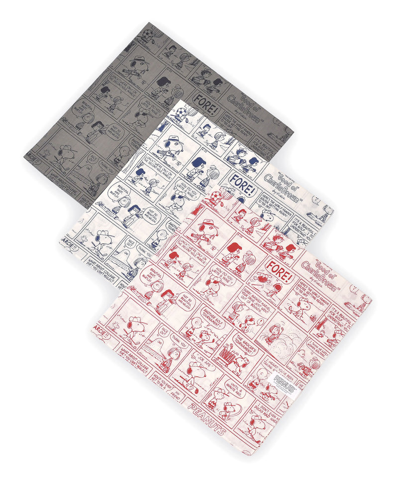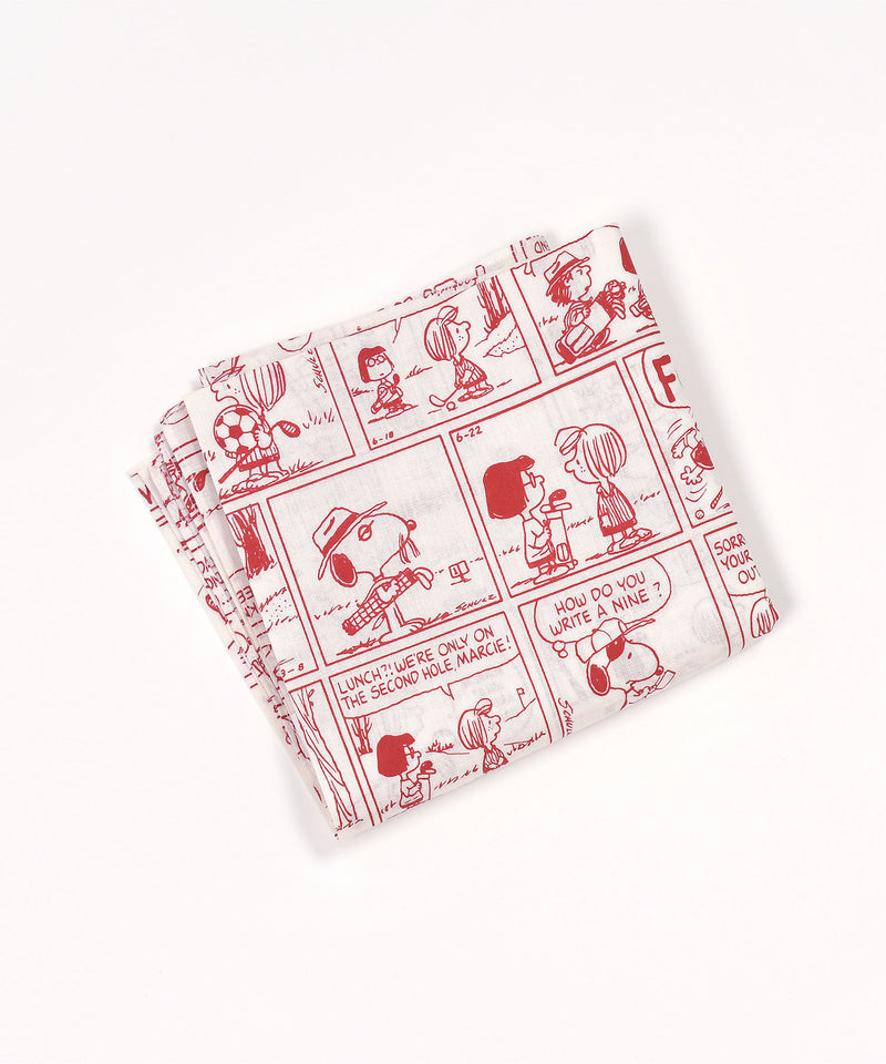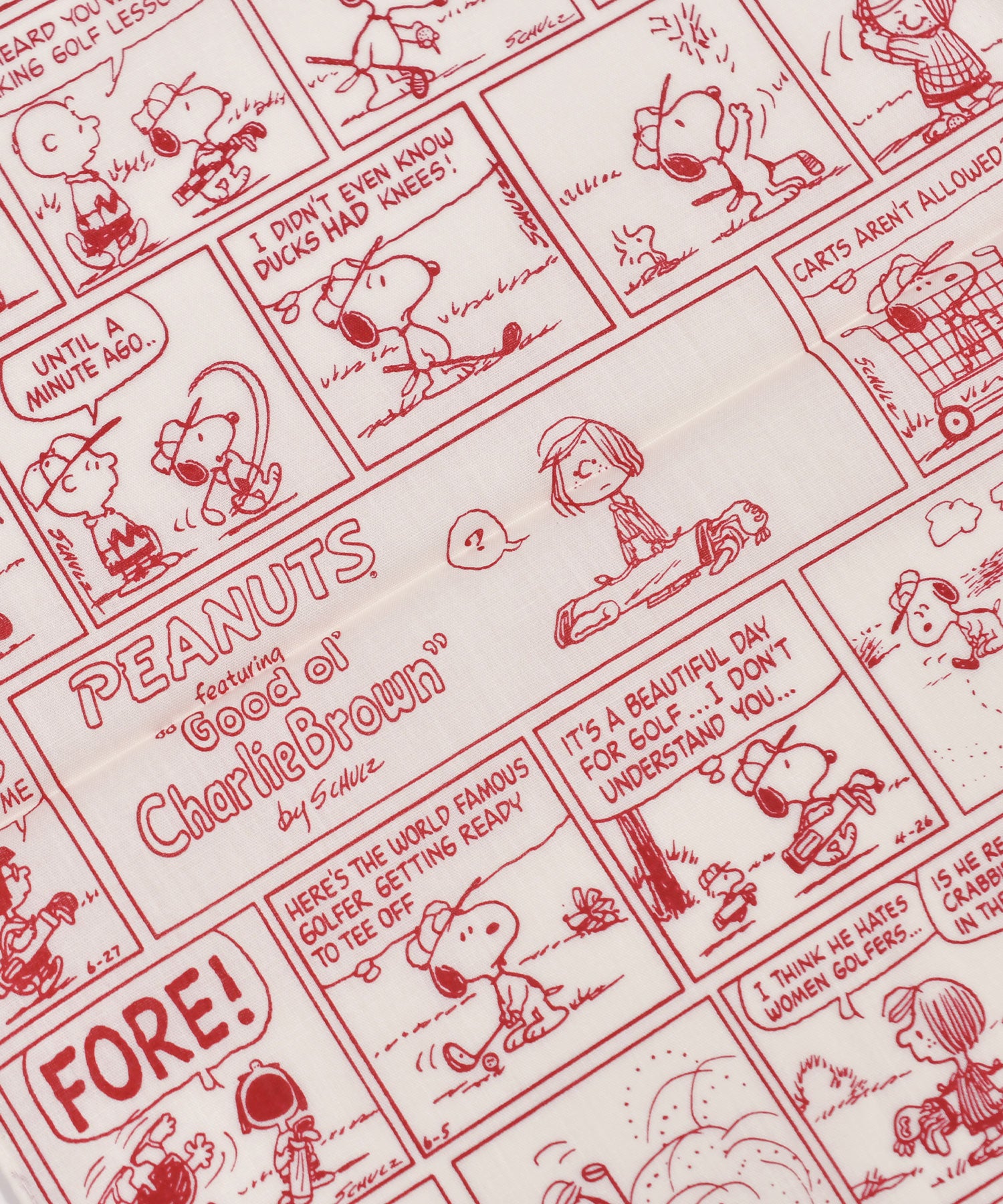薄手のハンカチタイプ。ゴルフを楽しむスヌーピーと仲間たちです。