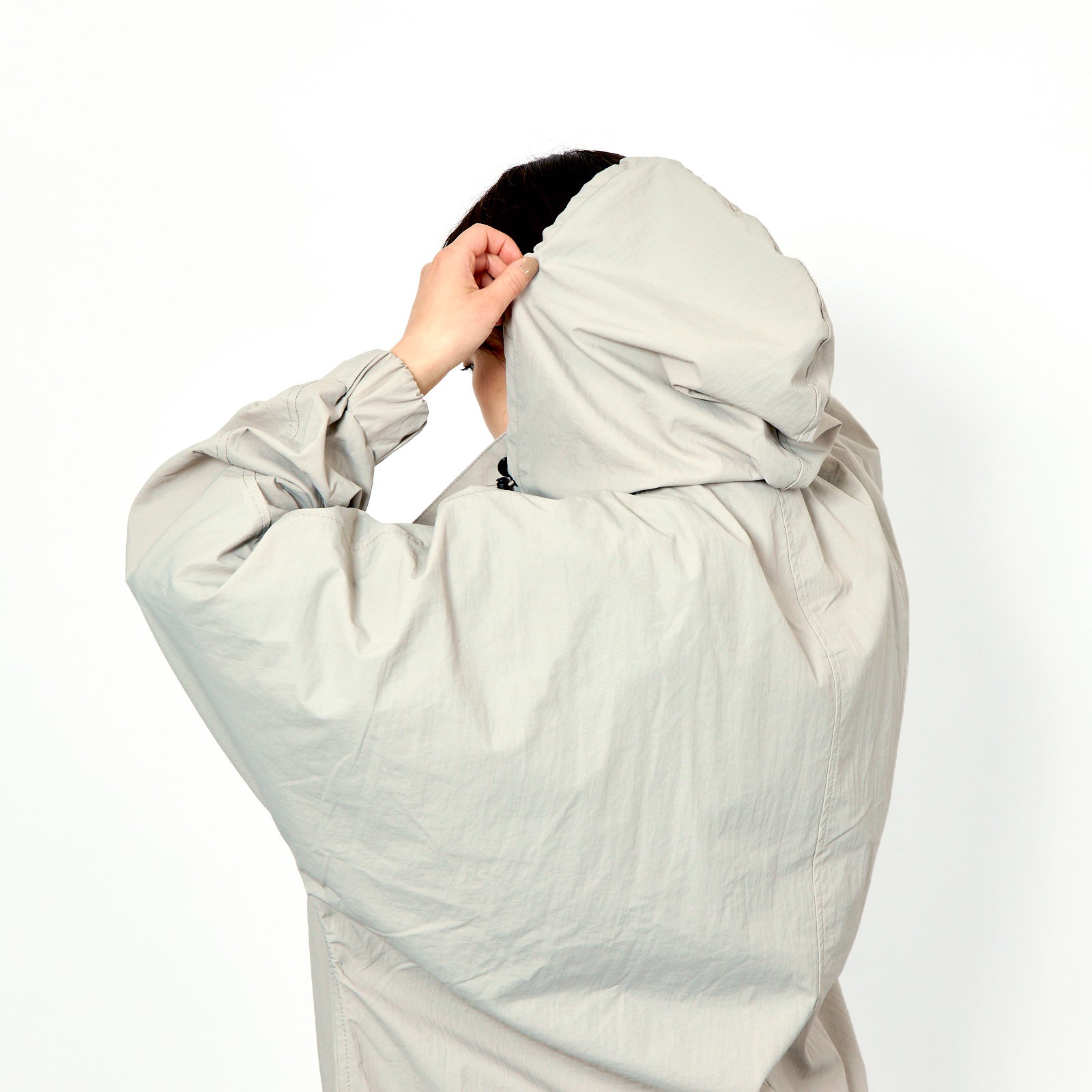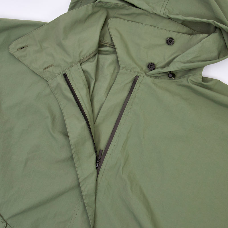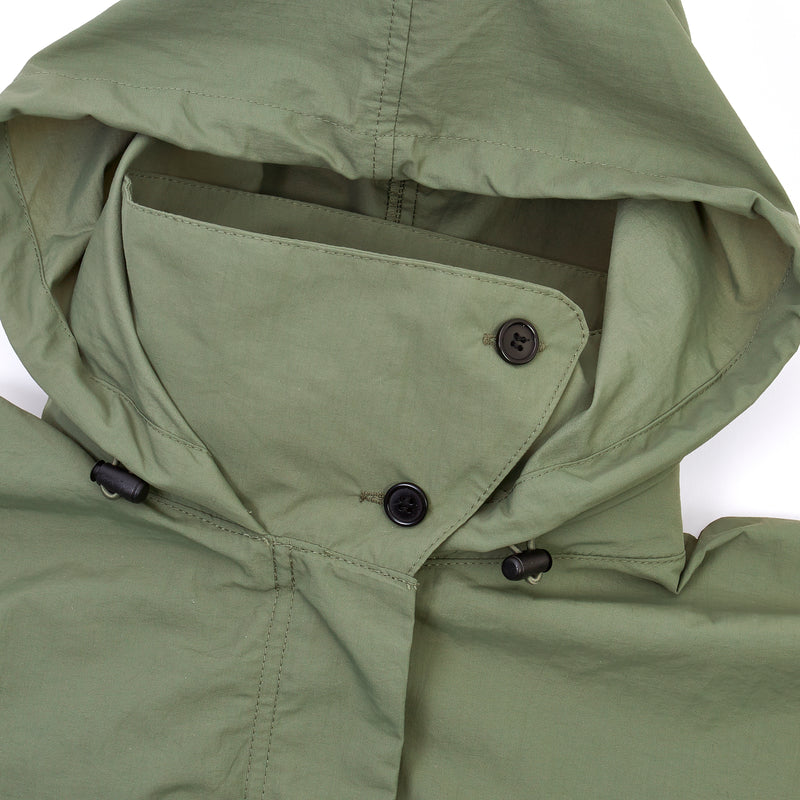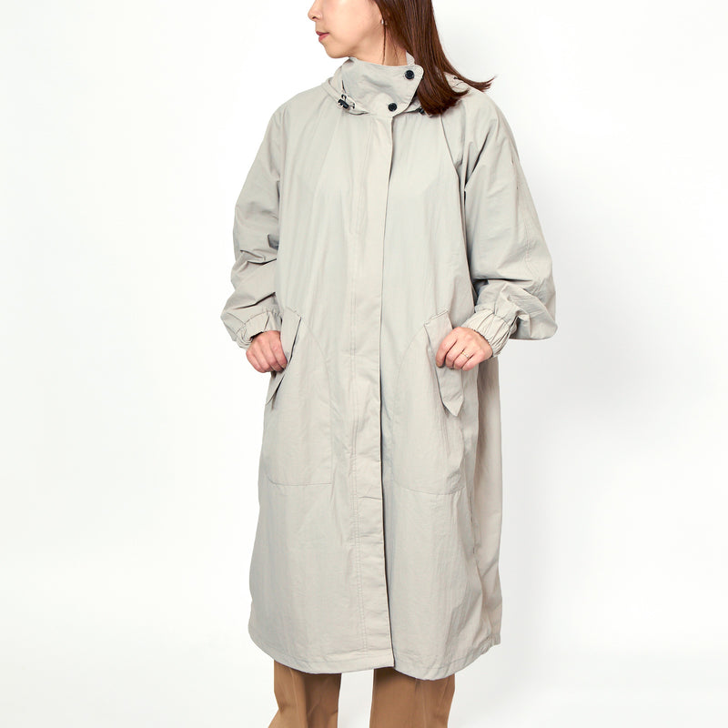 ゆったりとしたシルエットにフード付きがうれしいレインコート。