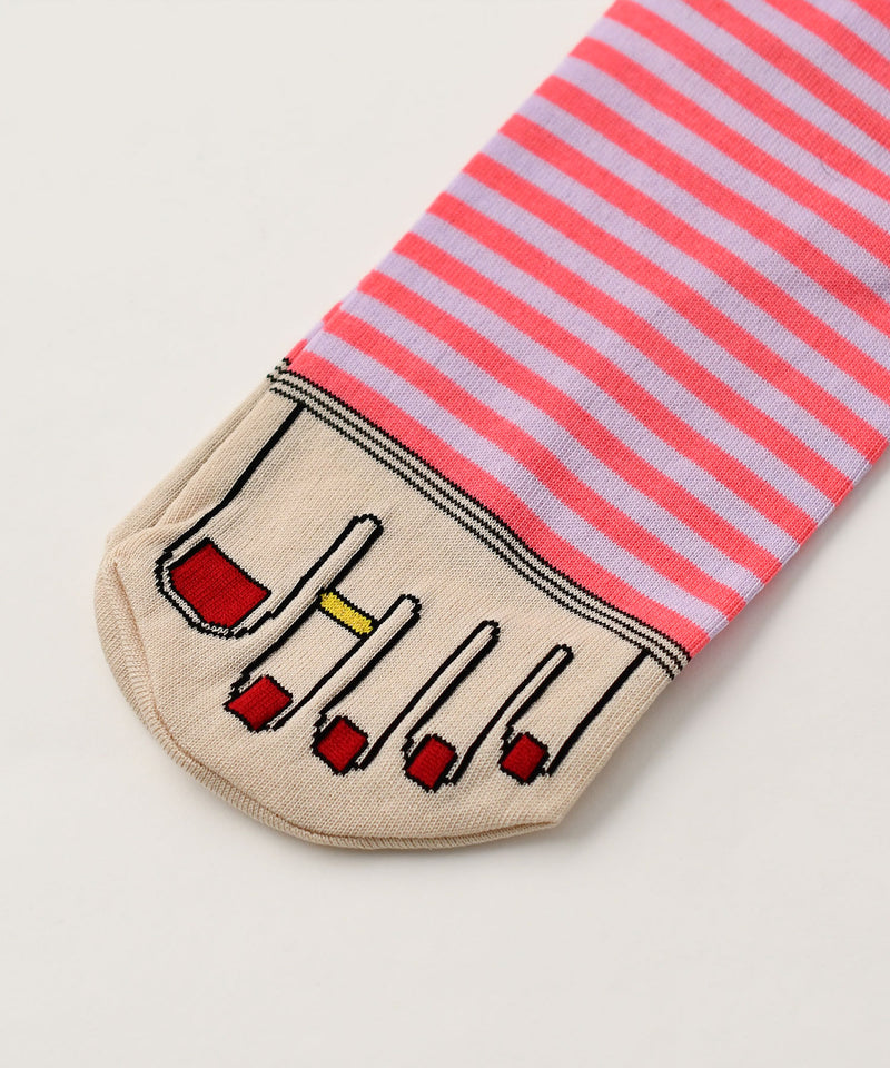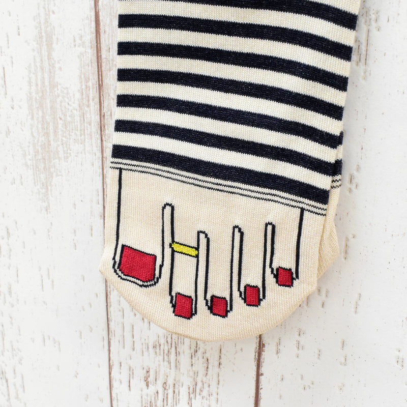 身に付ける人はもちろん、贈る人も贈られる人もHAPPYに。大人の女性心をくすぐるレッグウェア。ポップなペディキュアのイラストが特徴です。