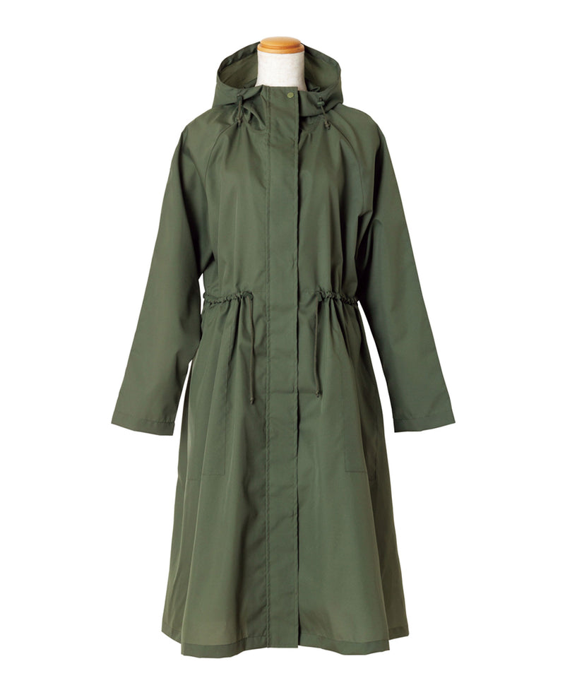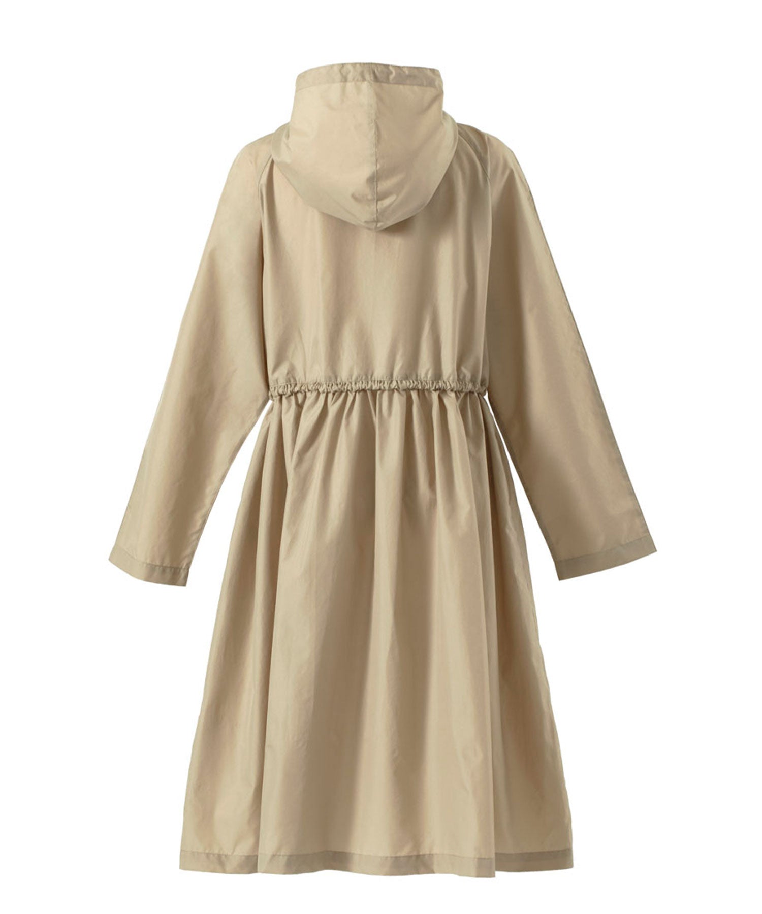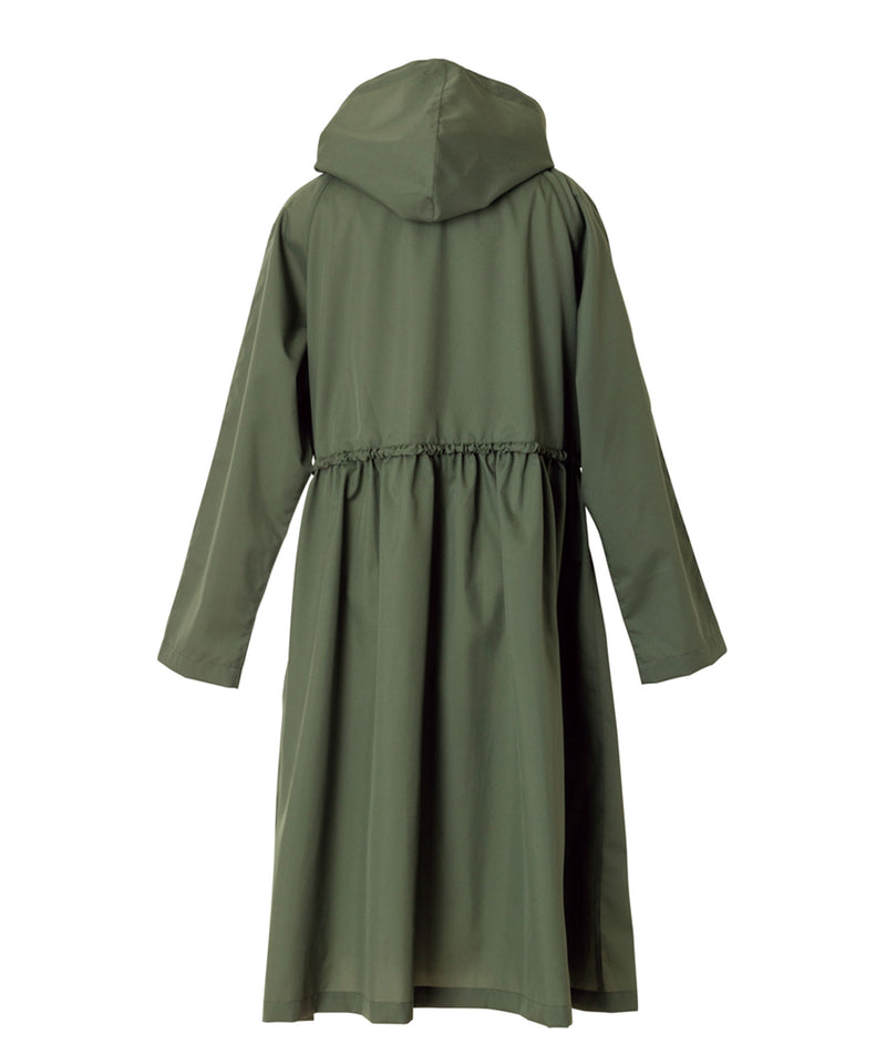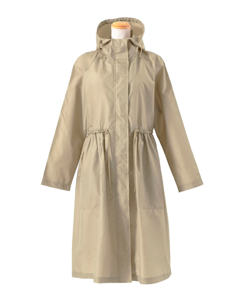 ウエストにギャザーがきいたフェミニンなシルエットのレインコート。着丈が長すぎず、足さばきも軽快です。ライトなアウター感覚で着用しやすいデザイン。