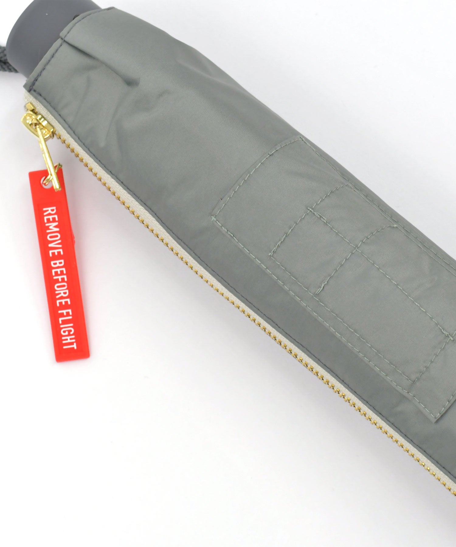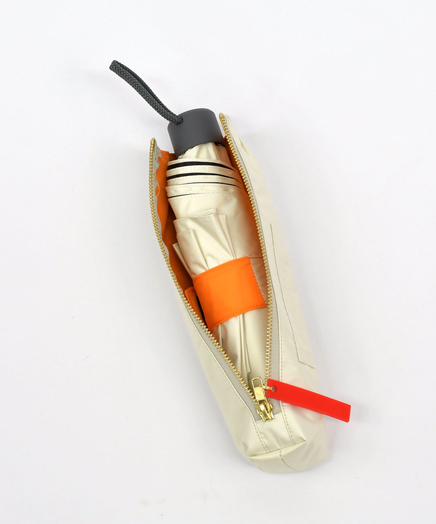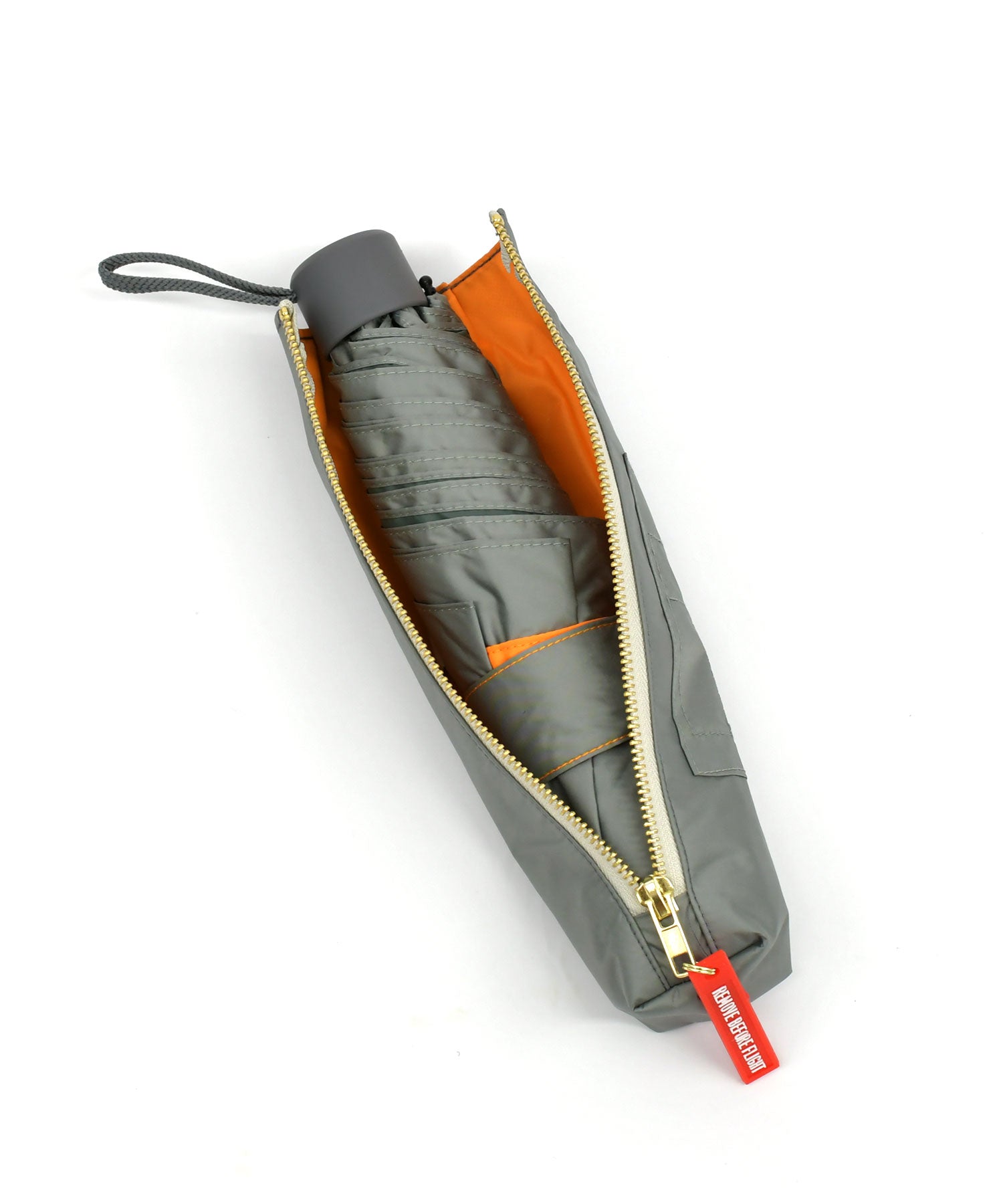 MA-1をイメージした配色の晴雨兼用アンブレラ。男性にもお使いいただけるデザインです。ファスナー開閉のケースなら濡れた傘の出し入れもスムーズです。