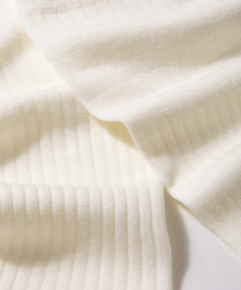 立体的なリブ編みがコーディネートのアクセントにもなり、脚を美しく引き締めて見せます。履き口はガーゼのようなソフトな肌あたりの編地に切り替えることで、履き心地の良さにもこだわりました。一般医療機器の段階着圧設計により、気になる脚のむくみを予防・軽減。