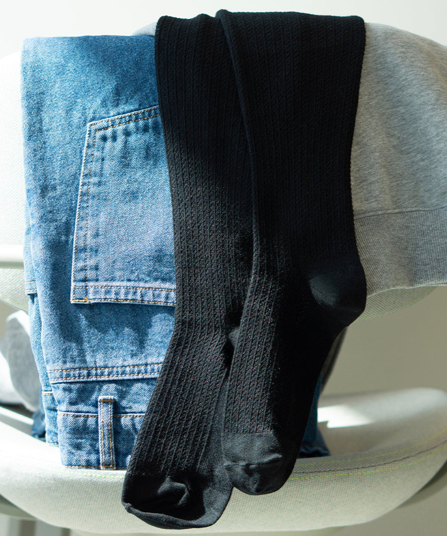 「綿のカシミヤ」とも呼ばれる上質な超長綿を使用した、コットンシアー素材の着圧ソックスです。