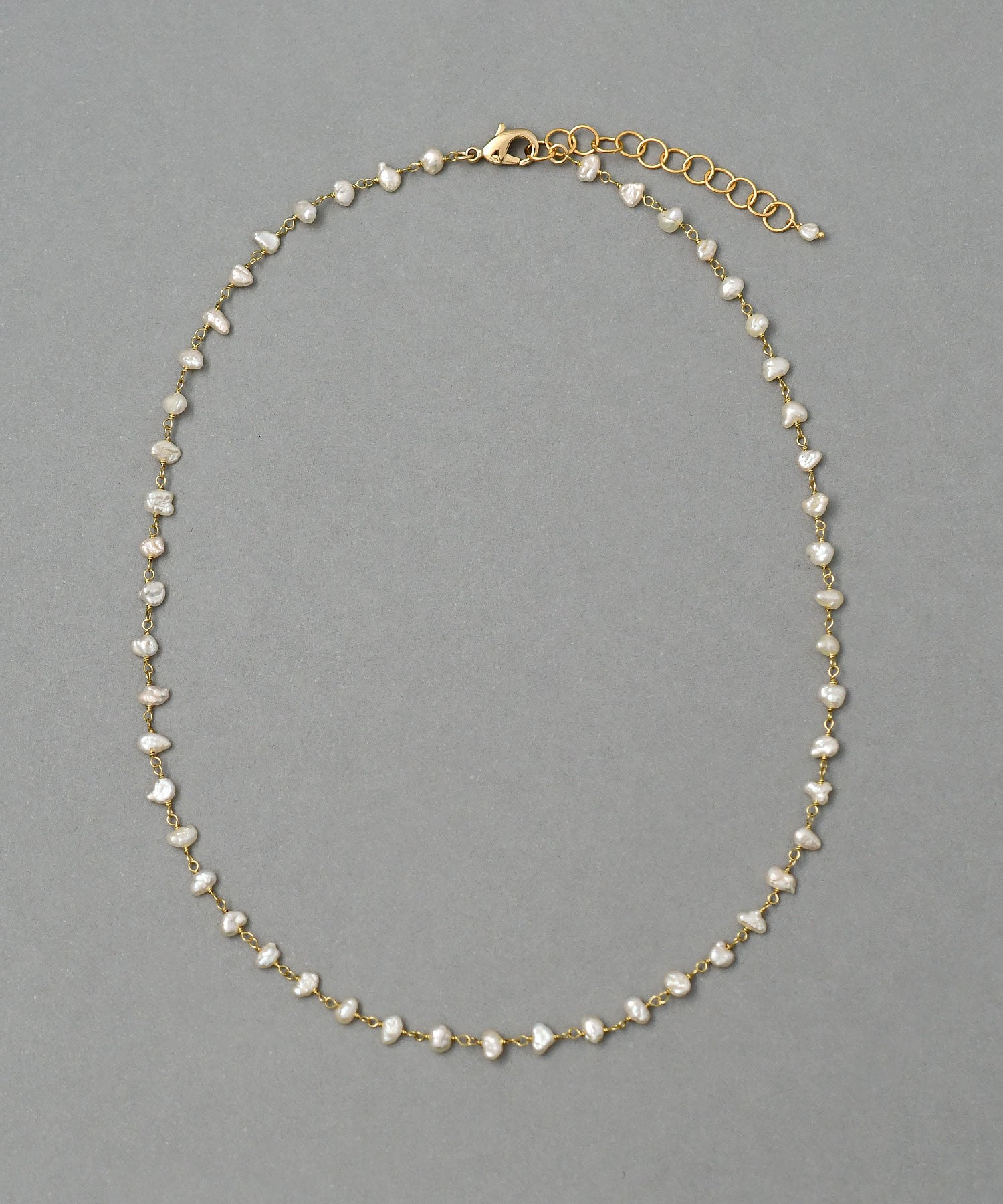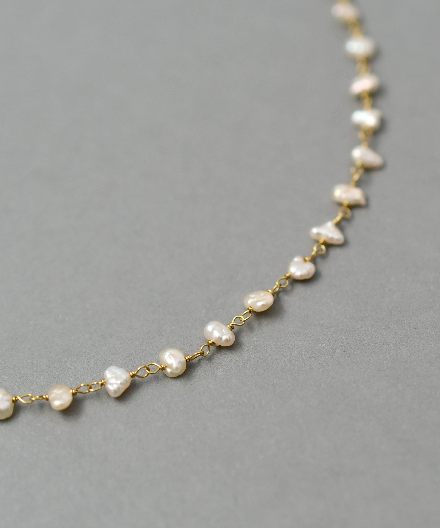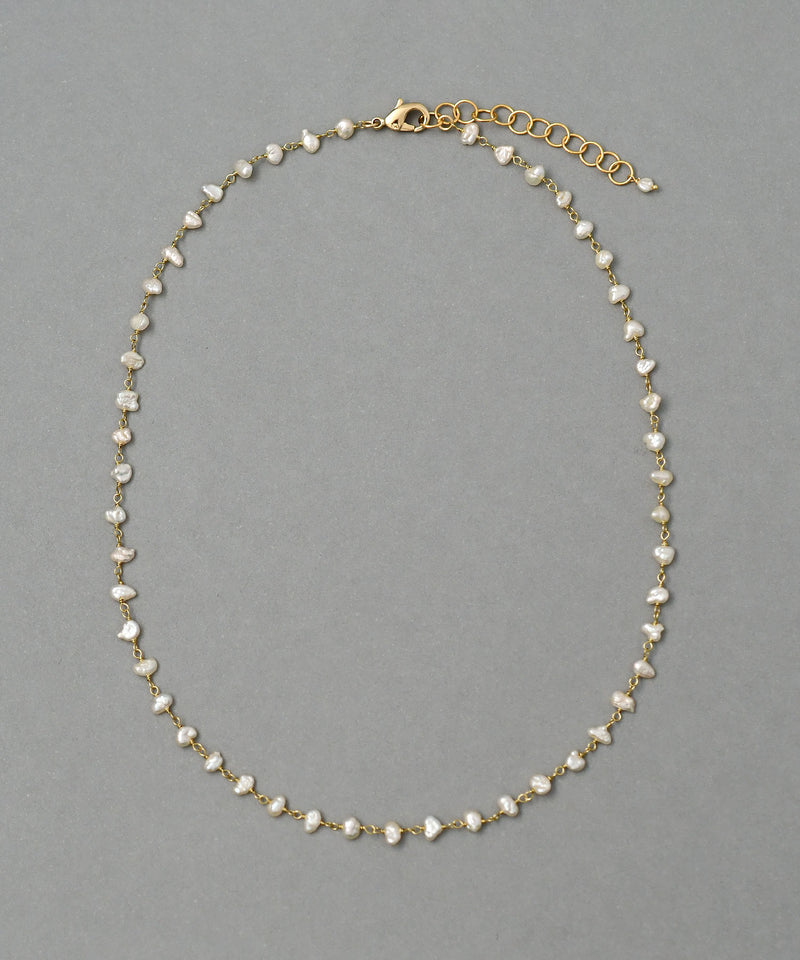 淡水パールの有機的な表情を纏う。コズリのネックレス。