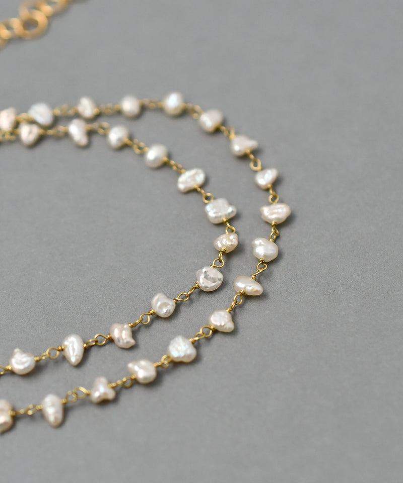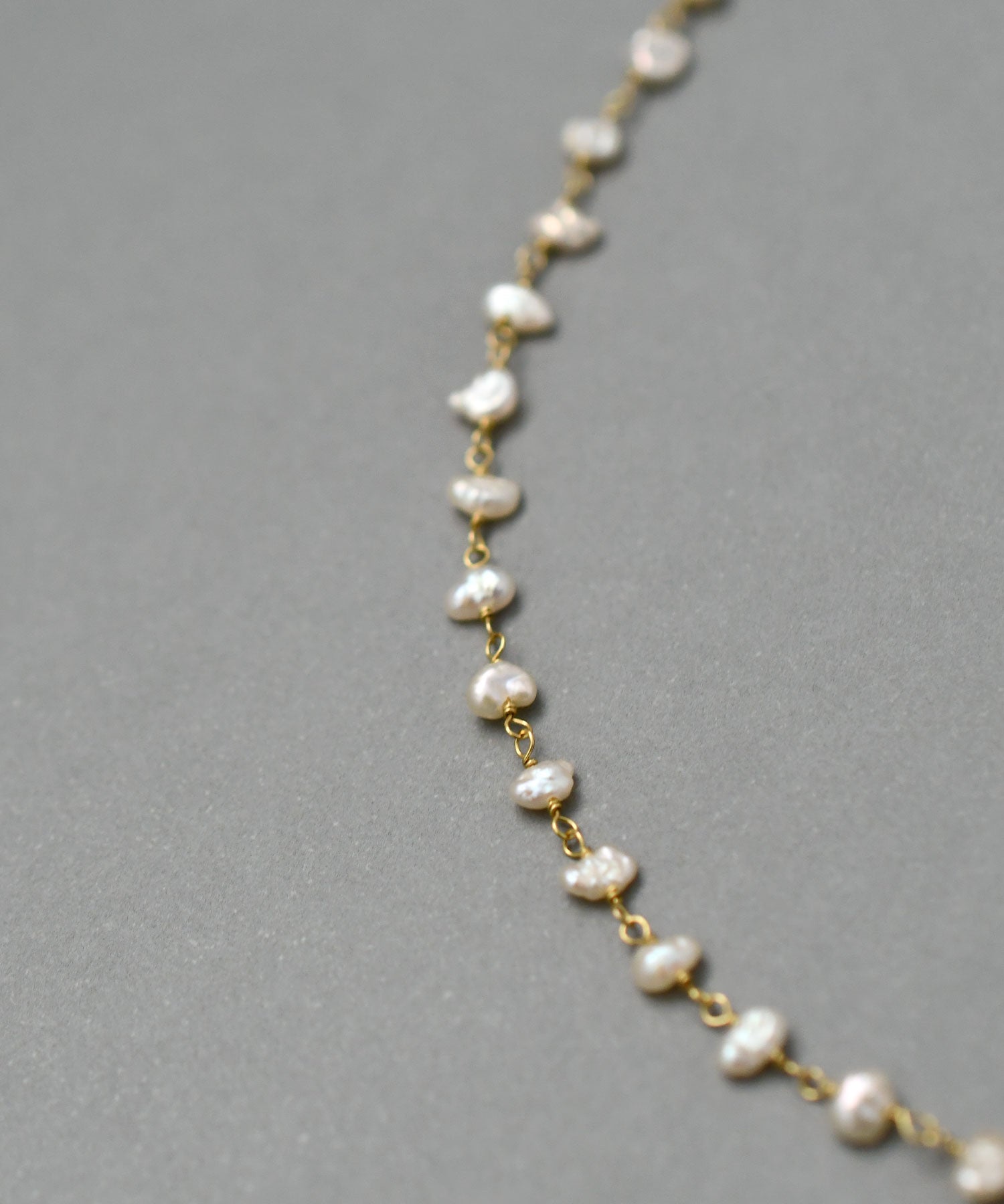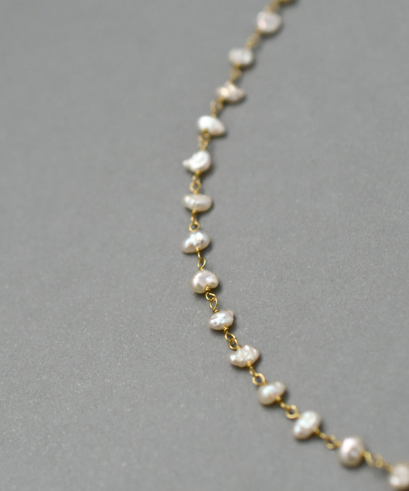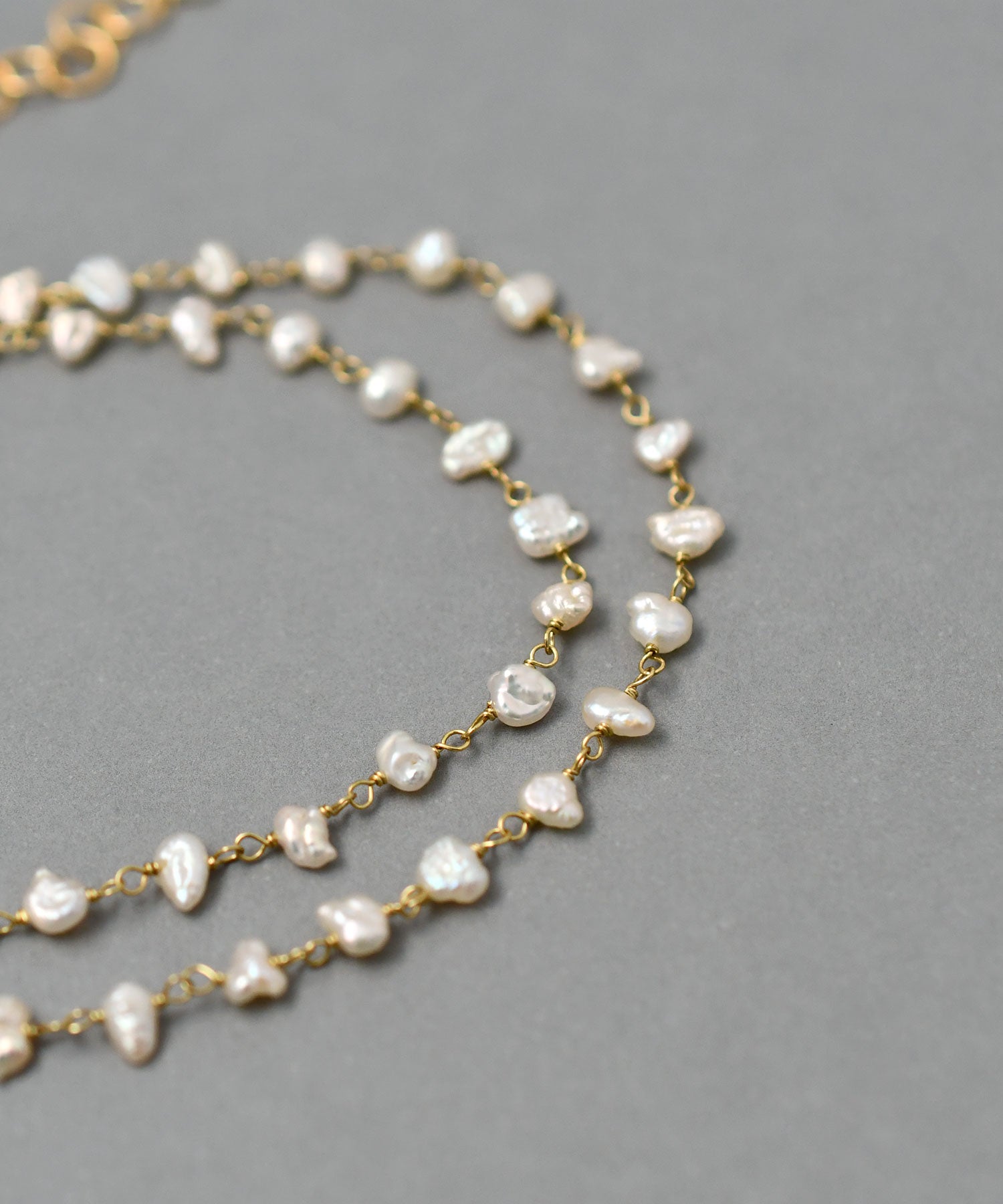 淡水パールの有機的な表情を纏う。コズリのネックレス。