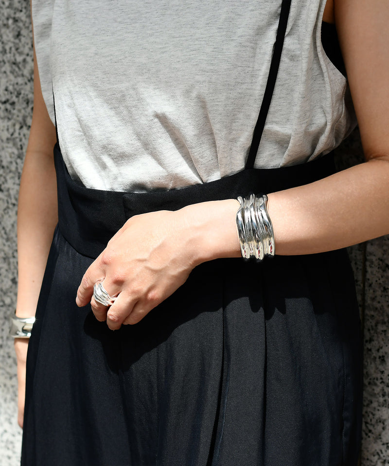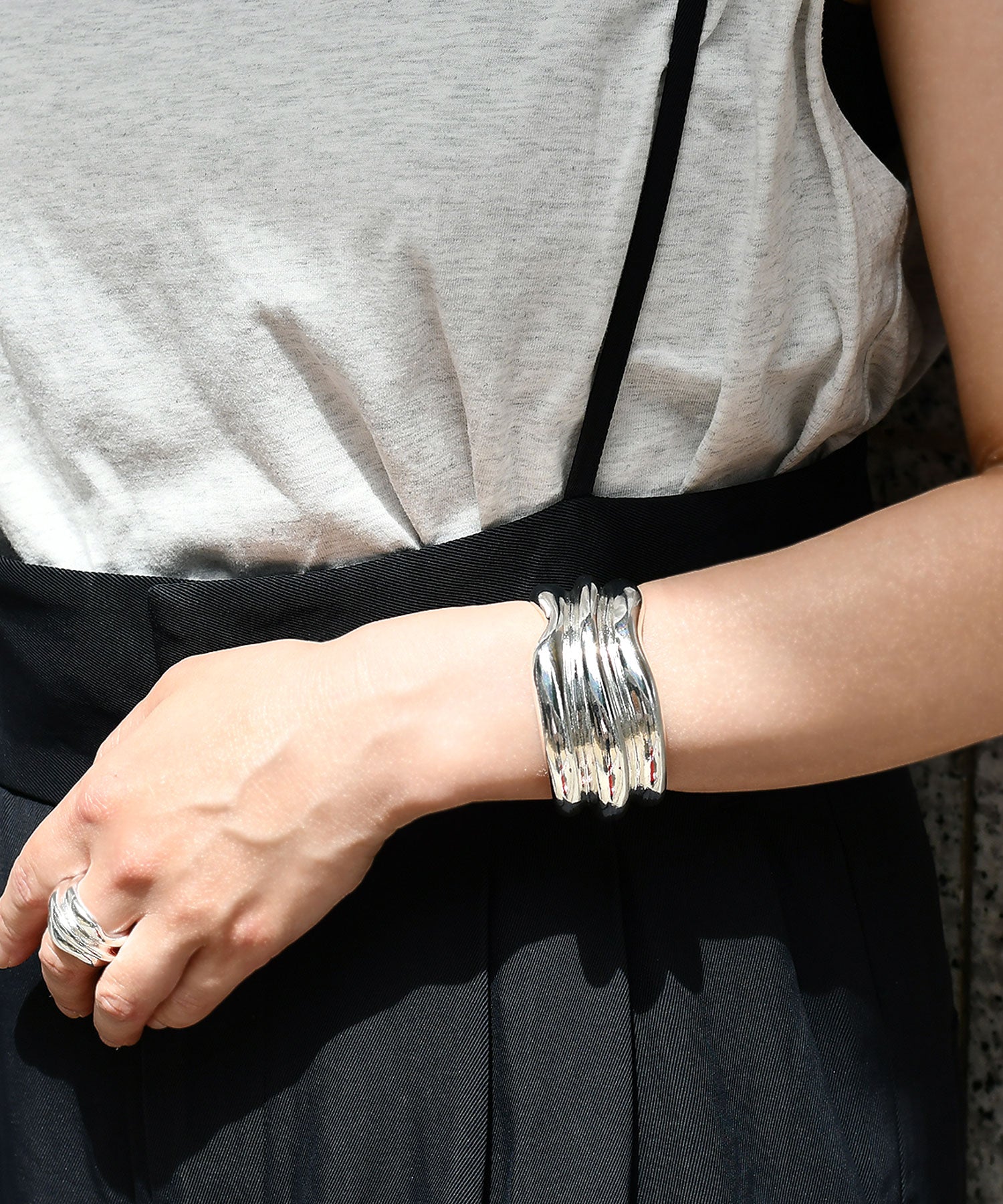 独特なウェーブが個性的なバングル。人気の高いワイドバングルの新作。