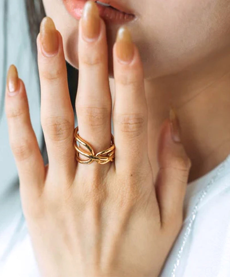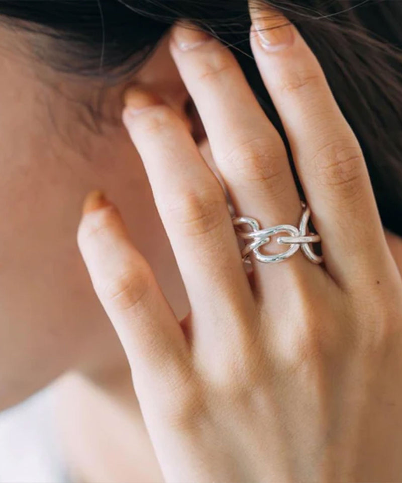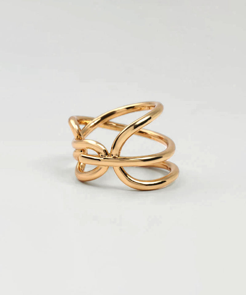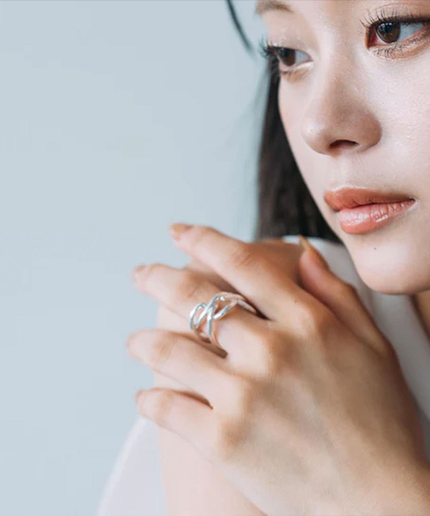 有機的な曲線が、手元に洗練された印象を与えてくれるリング。程よくボリュームのあるデザインが、指先を華奢に引き立ててくれます。モードにもカジュアルにも合わせやすく、シンプルなスタイリングにも映えます。