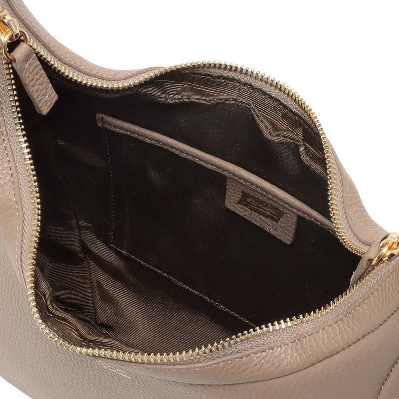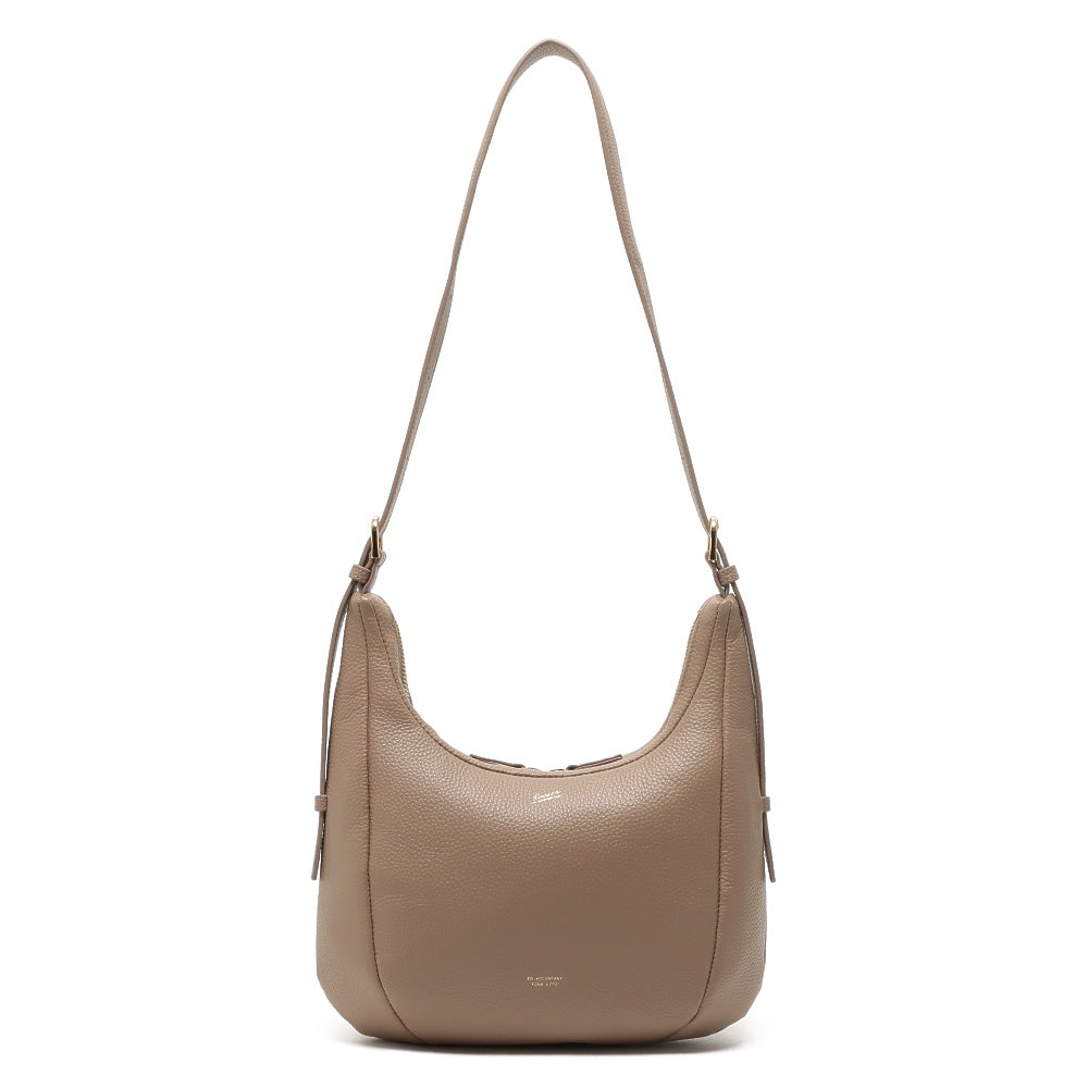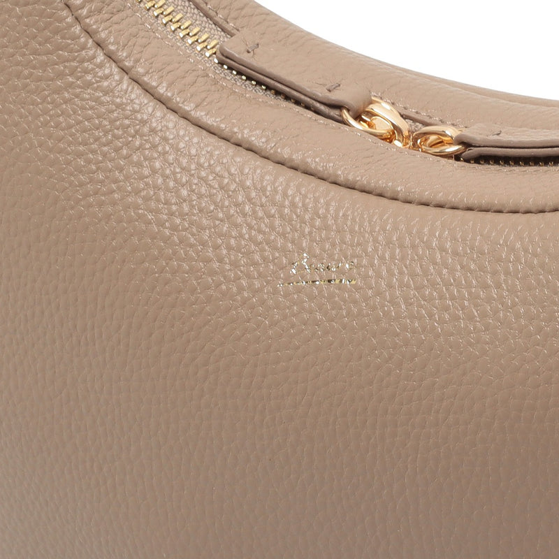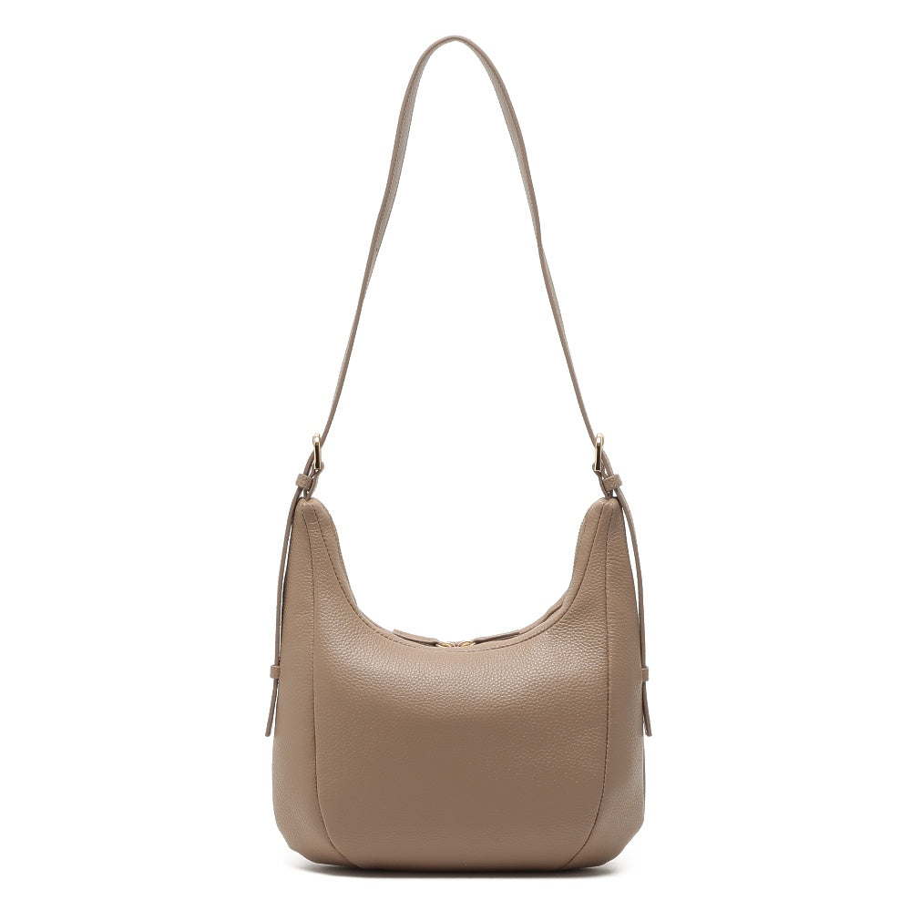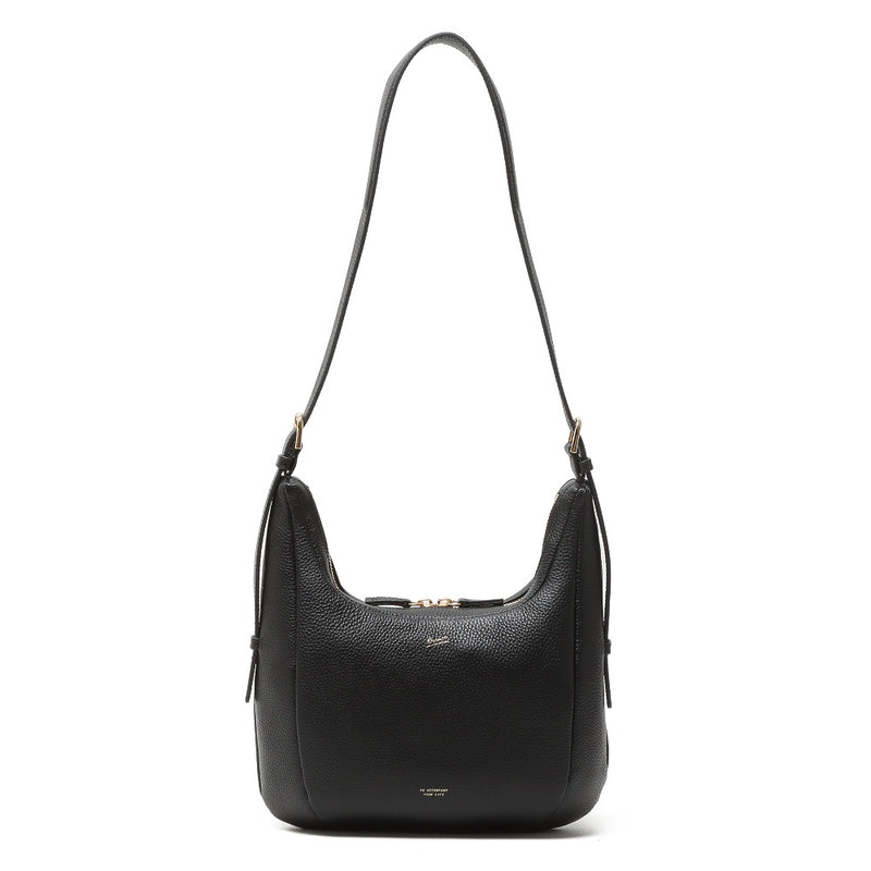 細かなシボが入った、しっとりとしたレザーが上品な艶感を醸し出すショルダーバッグ。