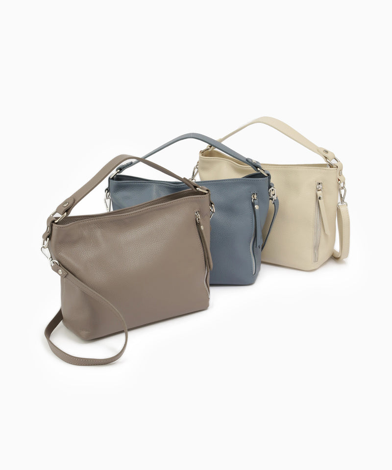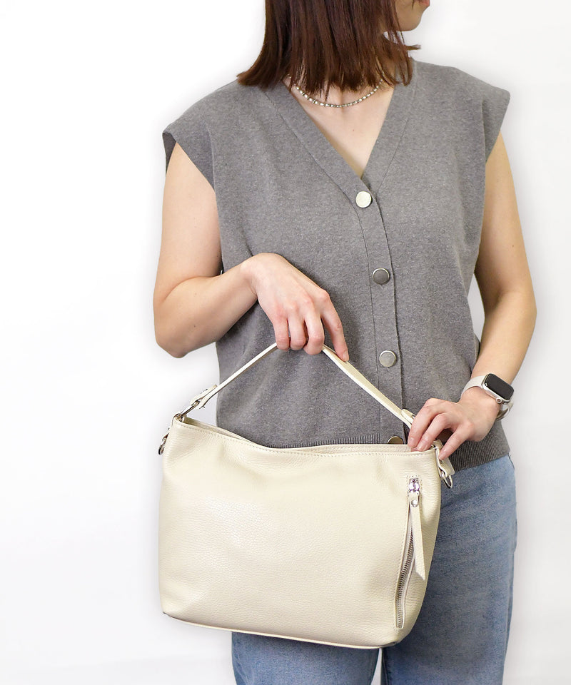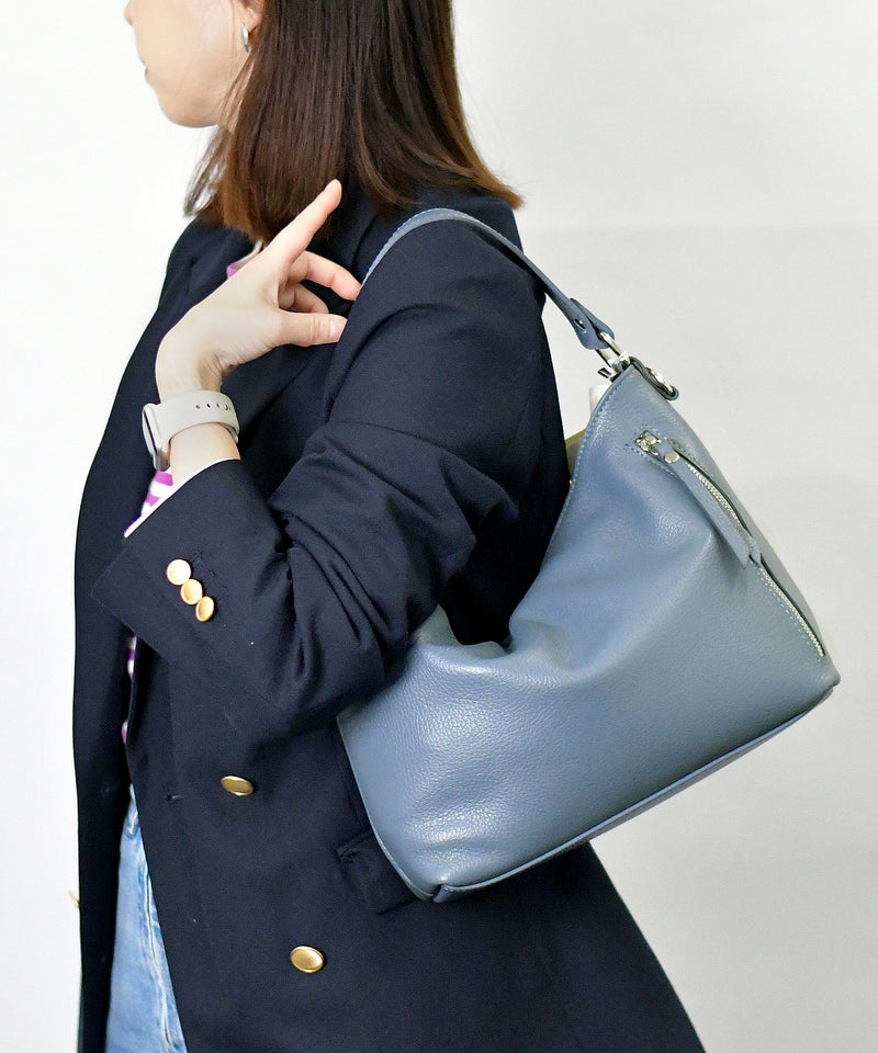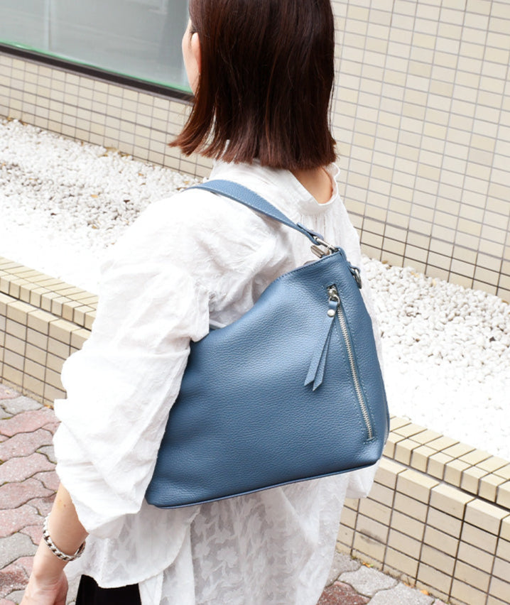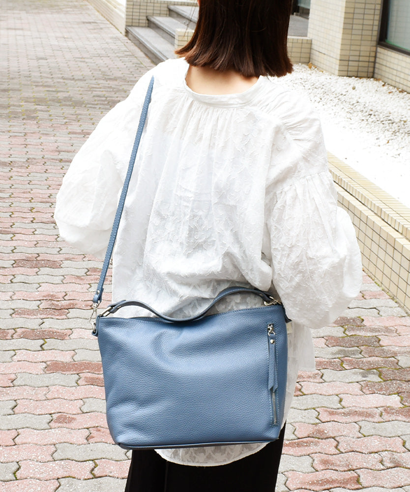 細かなシボのある艶の良いレザー。ハンドル持ちでかしこまったシーンに。肩掛けですっきりと。ロングショルダーでアクティブに。ディナーやショッピングなどシーンに合わせてさっと持ち替えができるバッグは、定番色以外にも季節感のあるカラーで揃えるのがおすすめです。