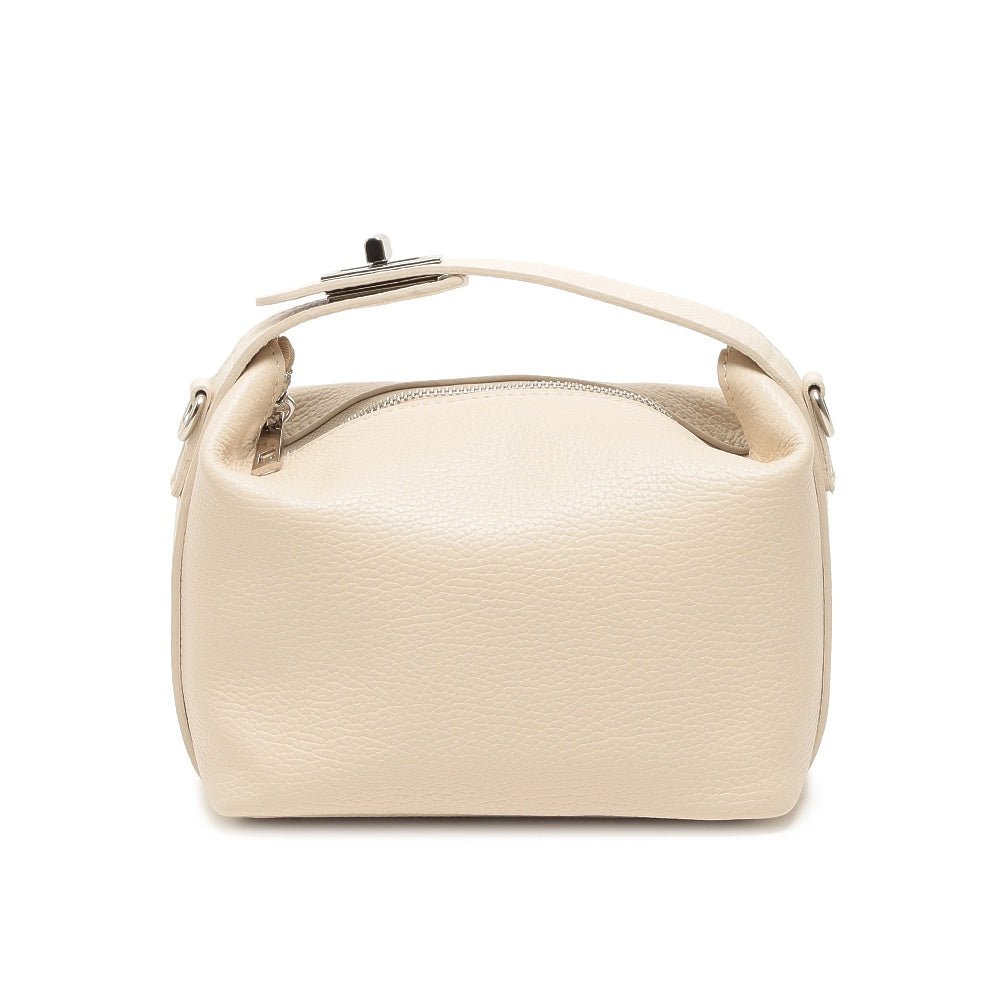 シーンを選ばず持てるシンプルなデザイン。ハンドルのひねり金具がワンポイント。柔らかく上質なレザーが、大人のスタイルにマッチします。