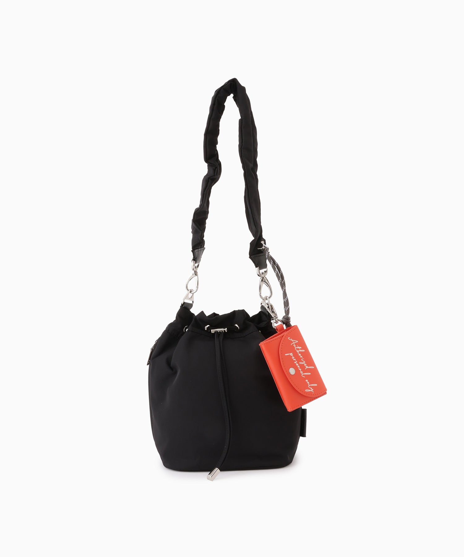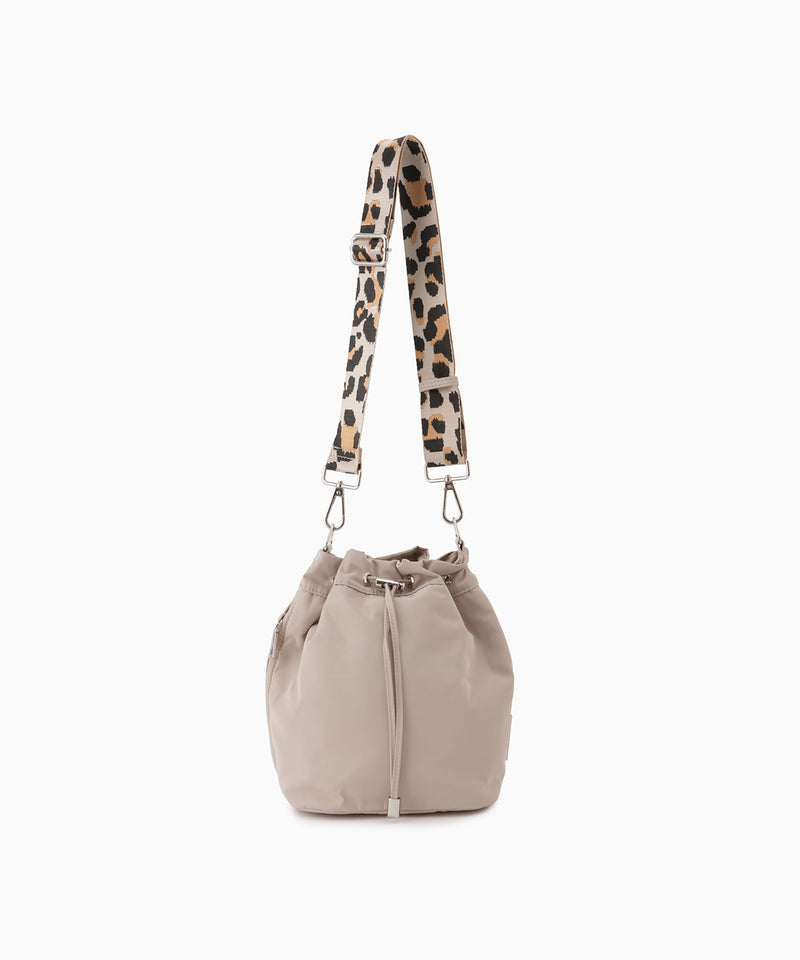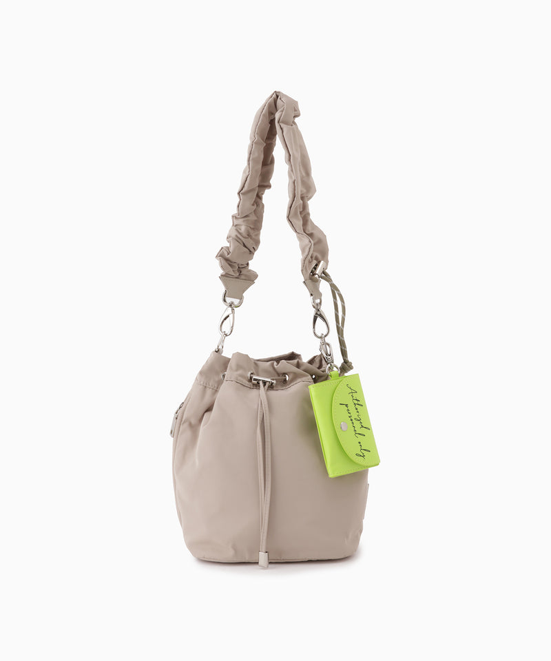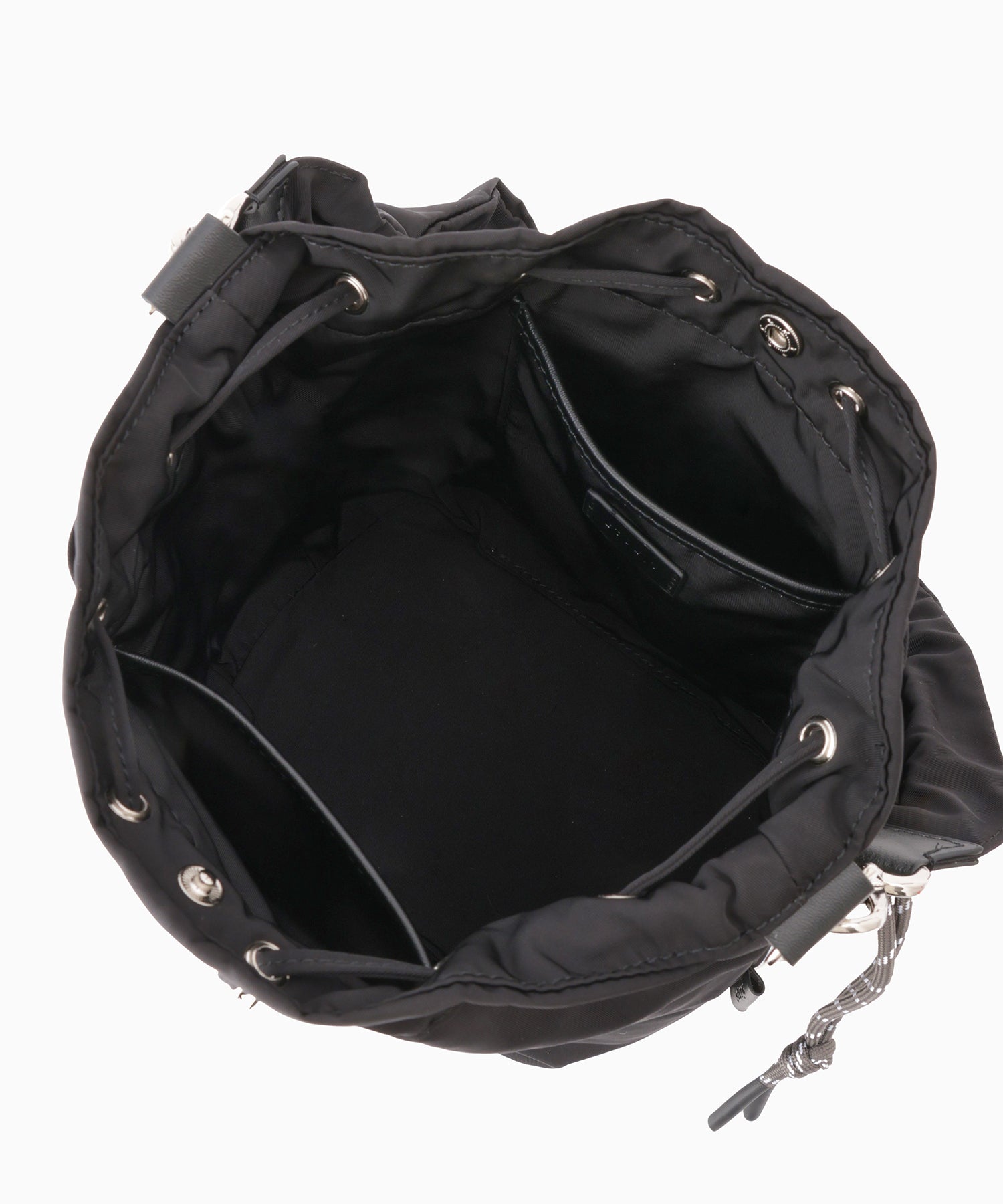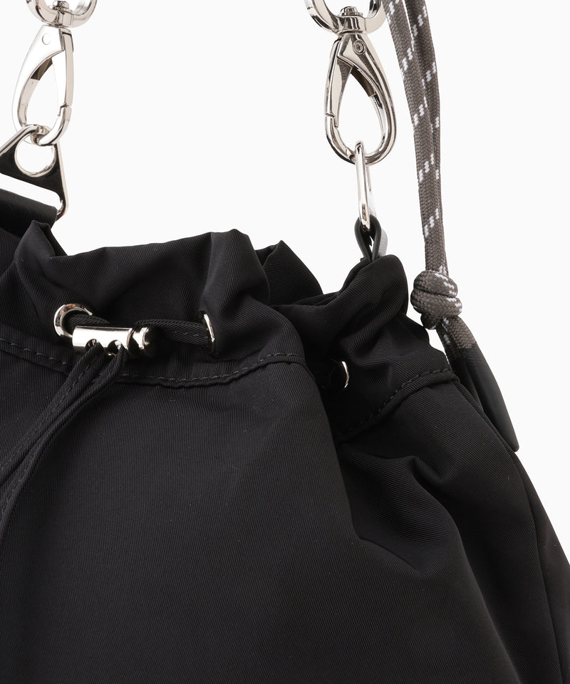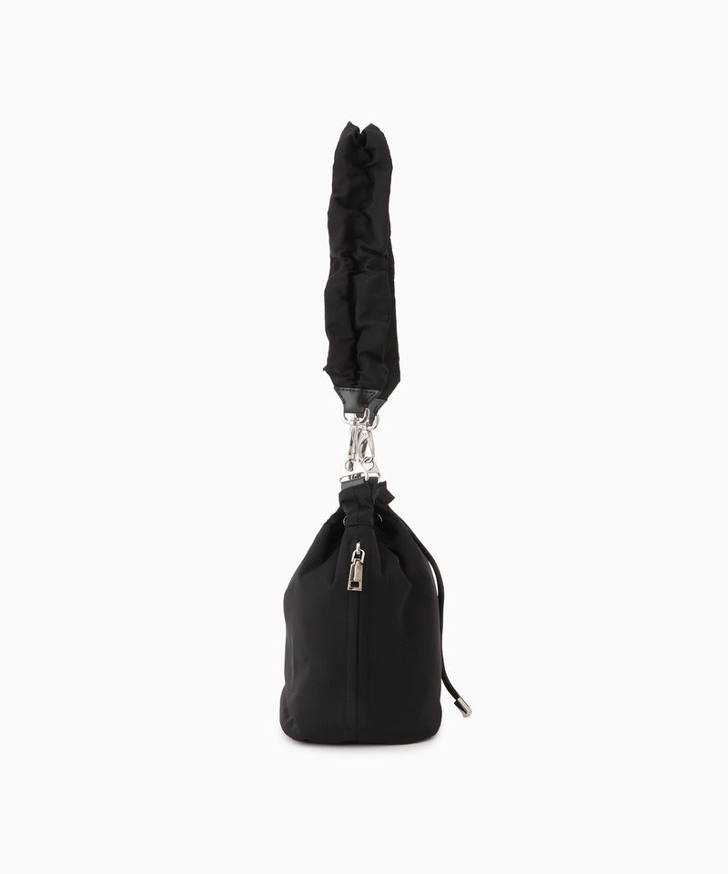 フェミニンなシャーリングストラップが目を惹くドローストリングバッグ。
