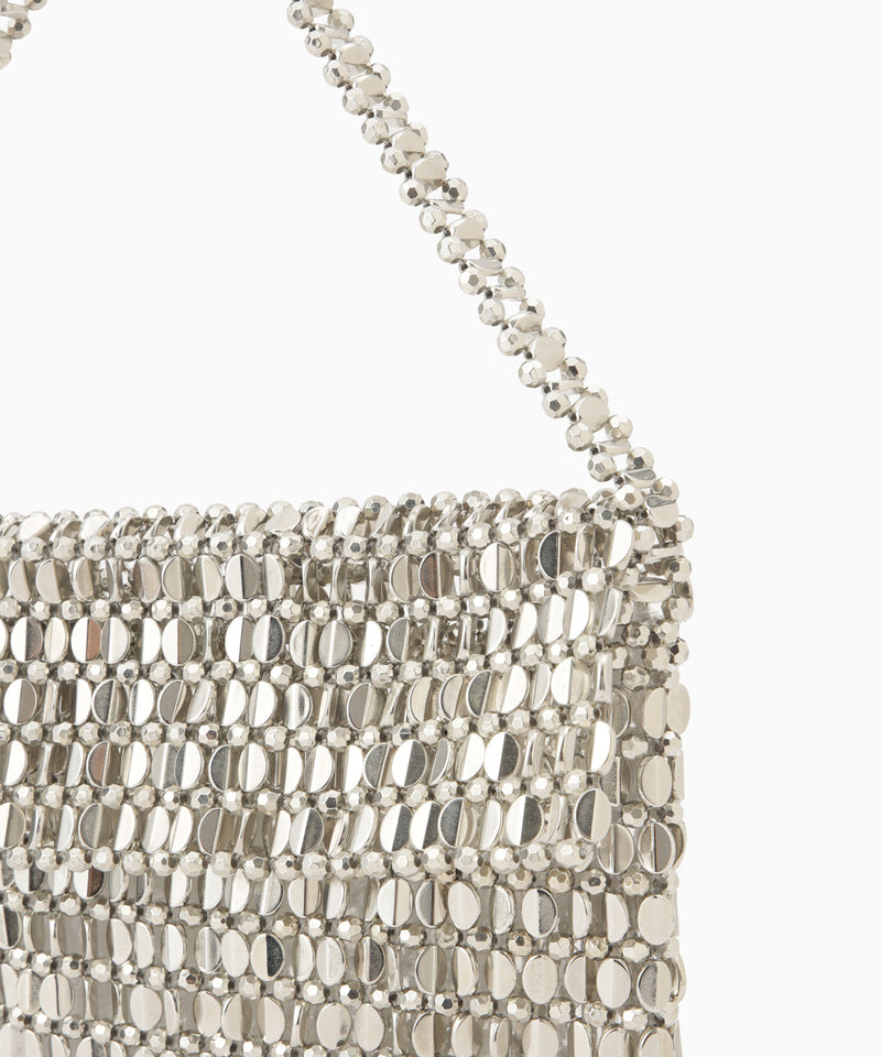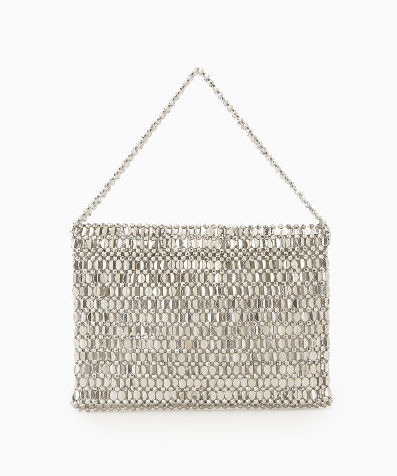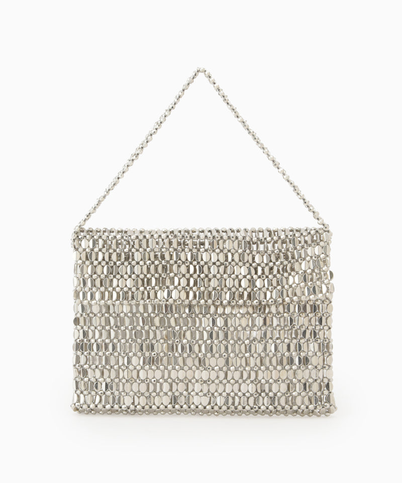 メタル調のビーズが輝くフラップ付きバッグ。おめかしスタイルにあわせても、キレイめコーデのサブバッグにも、カジュアルスタイルのアクセントにも、様々なスタイルになじむバランスの良さがポイントです。