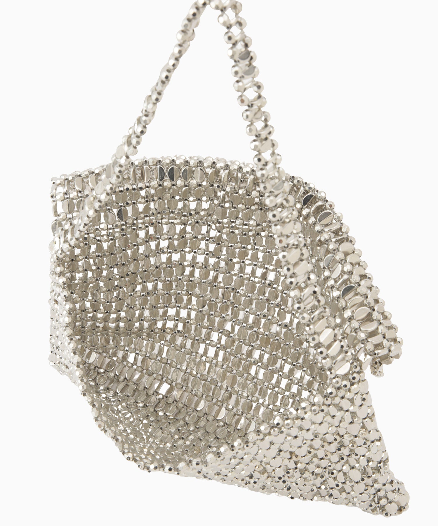 素材の特性上、使い初めにビーズの内側から銀粉が落ちます。バッグを振って銀粉を落としてからお使いいただきますと、使用後の落下が緩和されます。ご了承くださいますようお願いいたします。