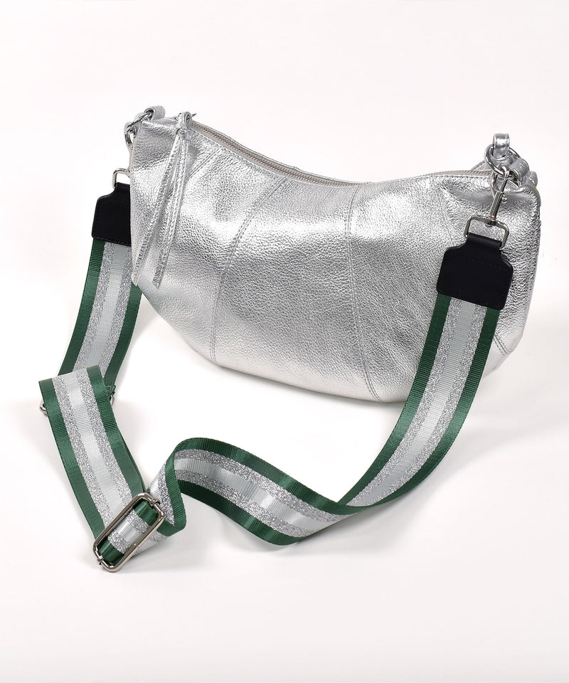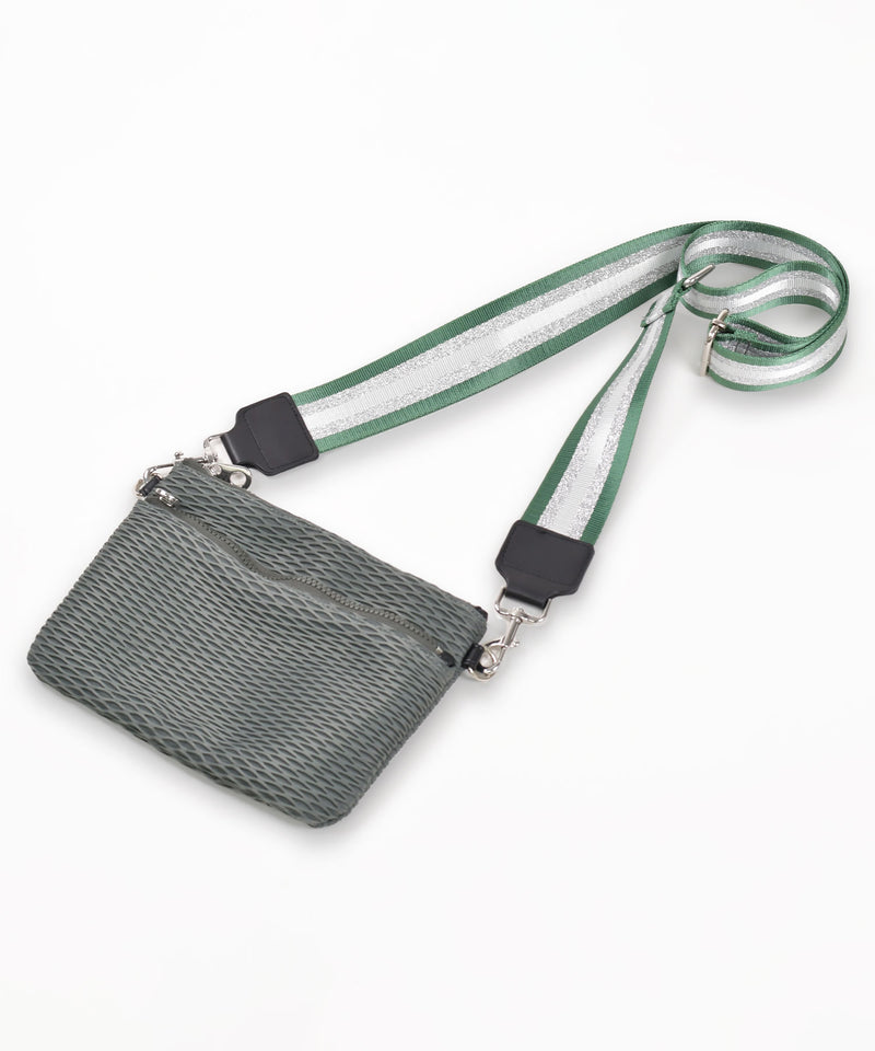 5㎝幅の太めで肩に掛けやすいバッグ用ショルダーベルト。ラメラインが入ったワイドなベルトで、いつものバッグに新たな表情をプラスしてくれます。