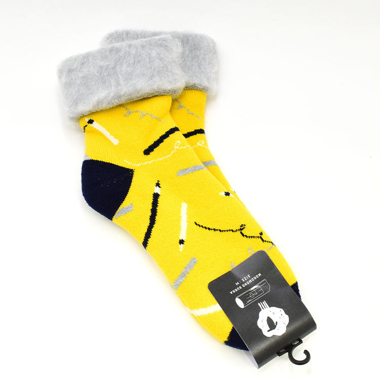 熟練した職人さんの技と手仕事をふんだんに駆使してつくられた、とってもあたたかなルームソックスです。明るく可愛いデザイン!お部屋での過ごし方も楽しみになりますね。