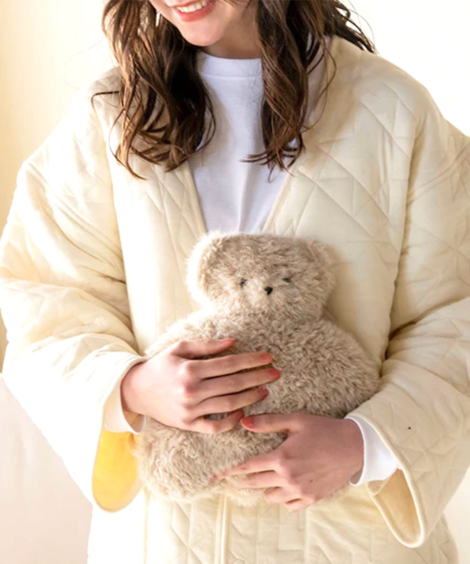 ハグしてお腹周りを温めてくれる、テディウォーマー