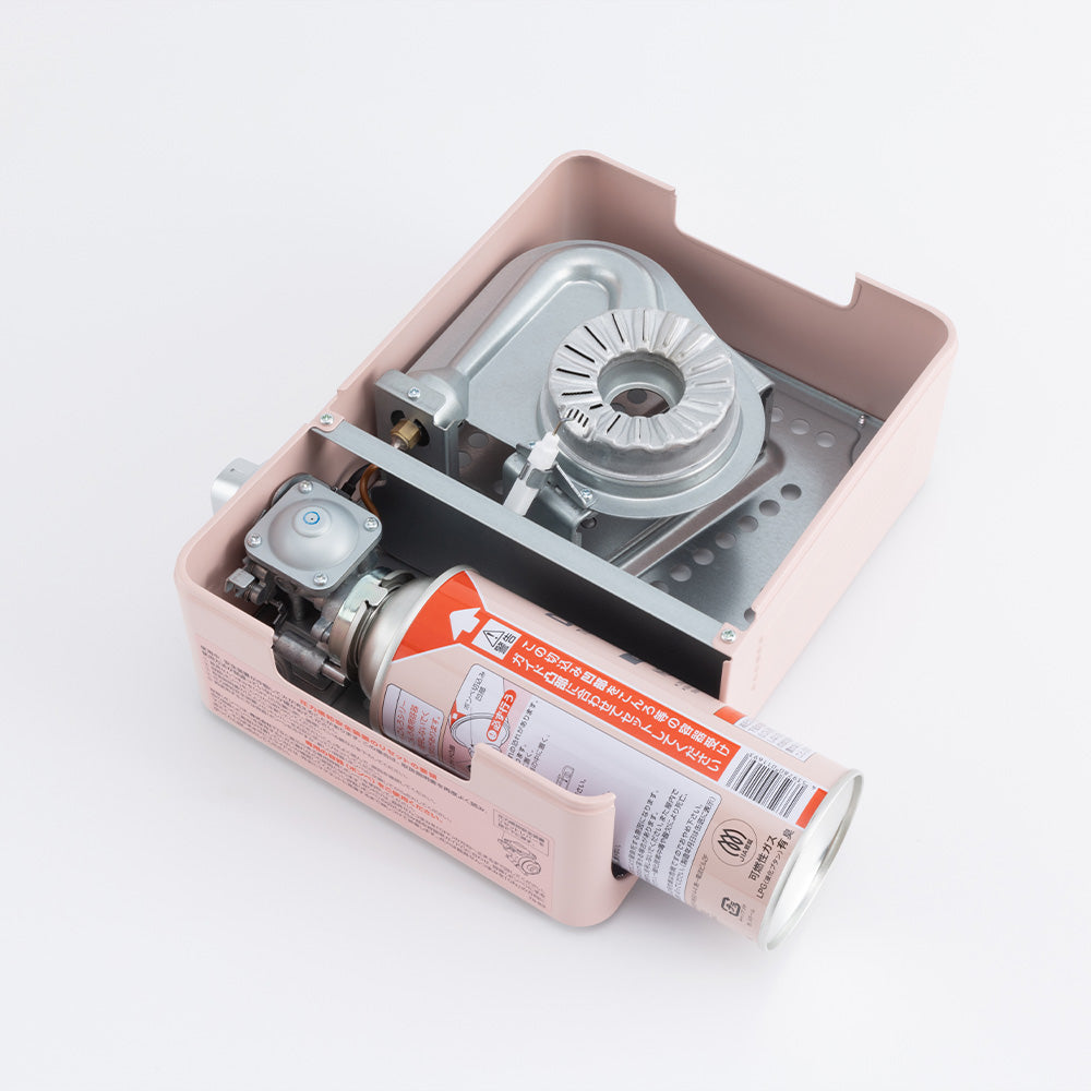 天板全体が外れる新タイプのカセットコンロ。通常のカセットコンロならボンベカバー、五徳部分が分かれ隙間に汚れが入り込んでしまったり、ザブザブと水洗いができない部分がありますが、汚れのつきやすい上部の天板を一体型にすることにより洗いやすく清潔に使用することができます。