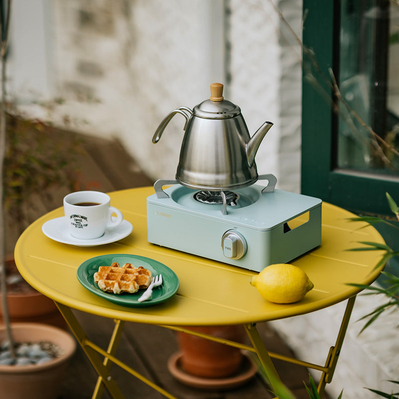 様々な空間を明るく彩るパステルカラーと心の奥まで癒される感性的なデザインで、クッキングタイムも楽しくなります。コンパクトなサイズでテーブルの上でも邪魔になりません。また、ケース付きなのでキャンプ、ピクニックなどの野外での使用にも便利なサイズです。