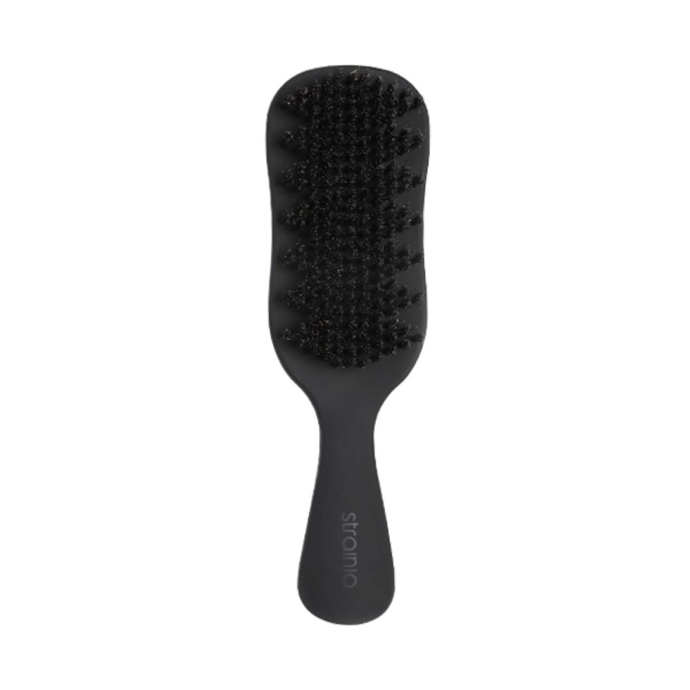 ボディの植毛部分は通常のブラシとは逆向きの内側に湾曲させた設計。頭部の形状に沿う事で、毛髪1本1本に直線的な力がかかりやすくなっています。また、薄型のため内側からも梳かしやすく、柄の部分以外を持っても使いやすく設計されているため、お好みに応じて微妙なコントロールや力加減を可能としています。