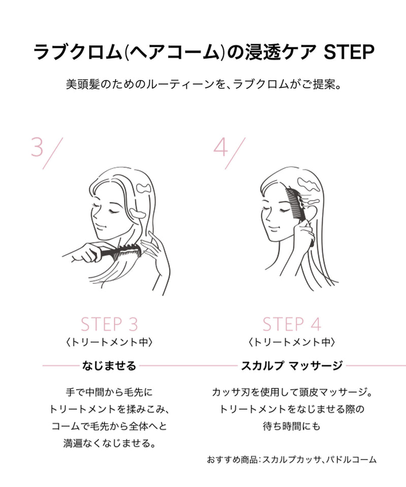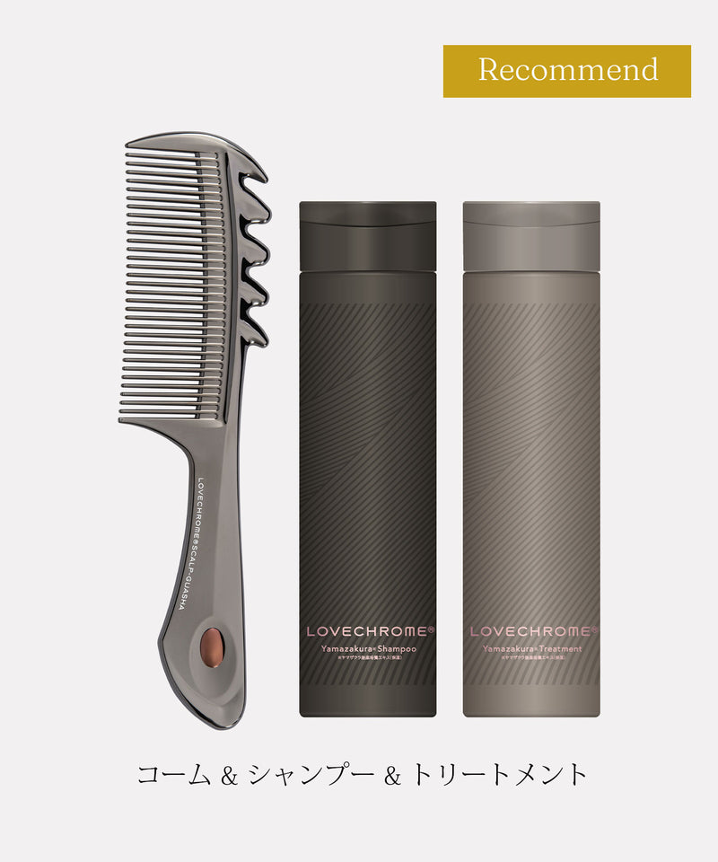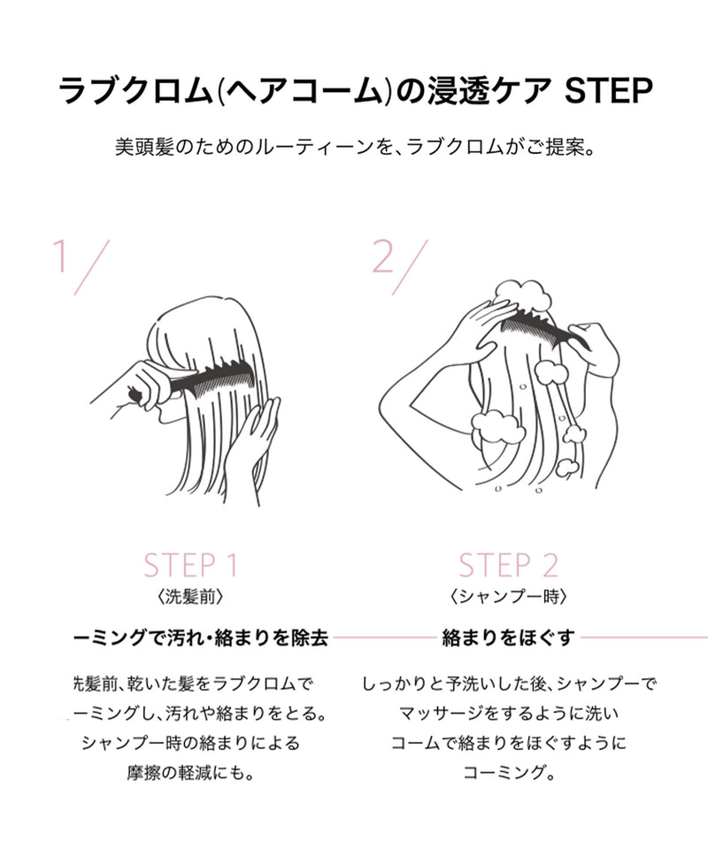 コームとはじめる、美容液シャンプー&トリートメント。ラブクロム専用設計で育む、浸透ヘアケア美髪習慣。潤いとツヤのある美頭髪へのアプローチ。