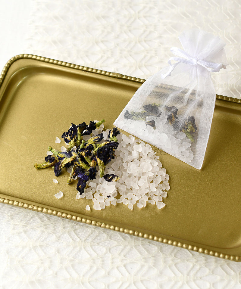 深く体中に吸い込みたくなるフレッシュで濃厚な花々やハーブの香り。お湯に溶けると優しく香り、1日の疲れ、気持ちのこわばりを解きほぐしてくれるよう。デイリーにお使いいただけるお手頃なお値段で、プチギフトにおすすめです。
