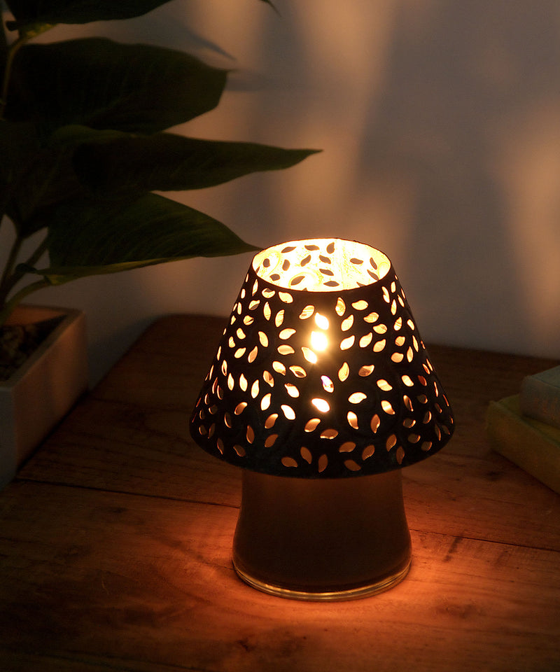 ▢炎の熱が逃げにくくなり、トンネル現象(炎の熱がキャンドル全体に広がらず、中心だけが溶け進んでいく現象)を防いでくれます。▢シェードを被せるだけでスタイリッシュなキャンドルランプに変身。リーフの陰影もお楽しみいただけます。