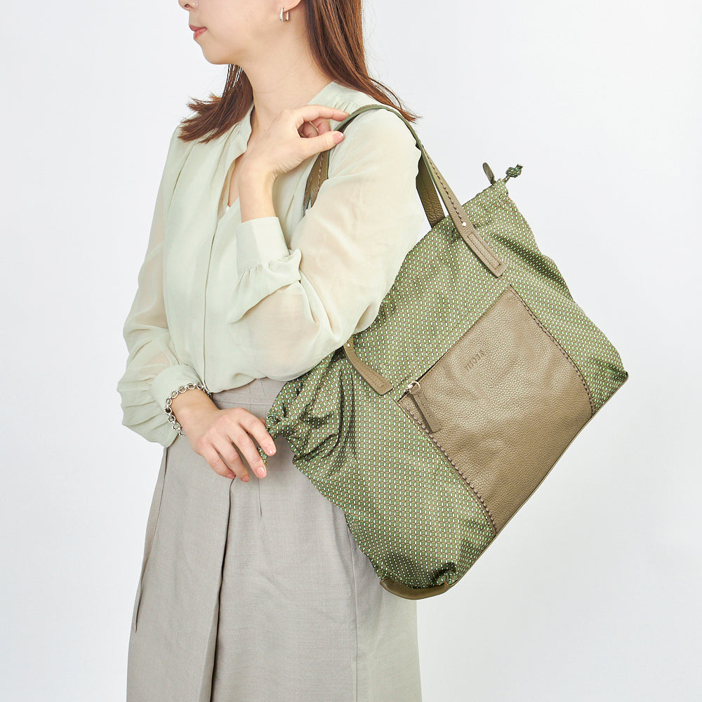 [素材]表地:ポリエステル ポリエチレン 牛革 裏地:ポリエステル ナイロン 持ち手:牛革