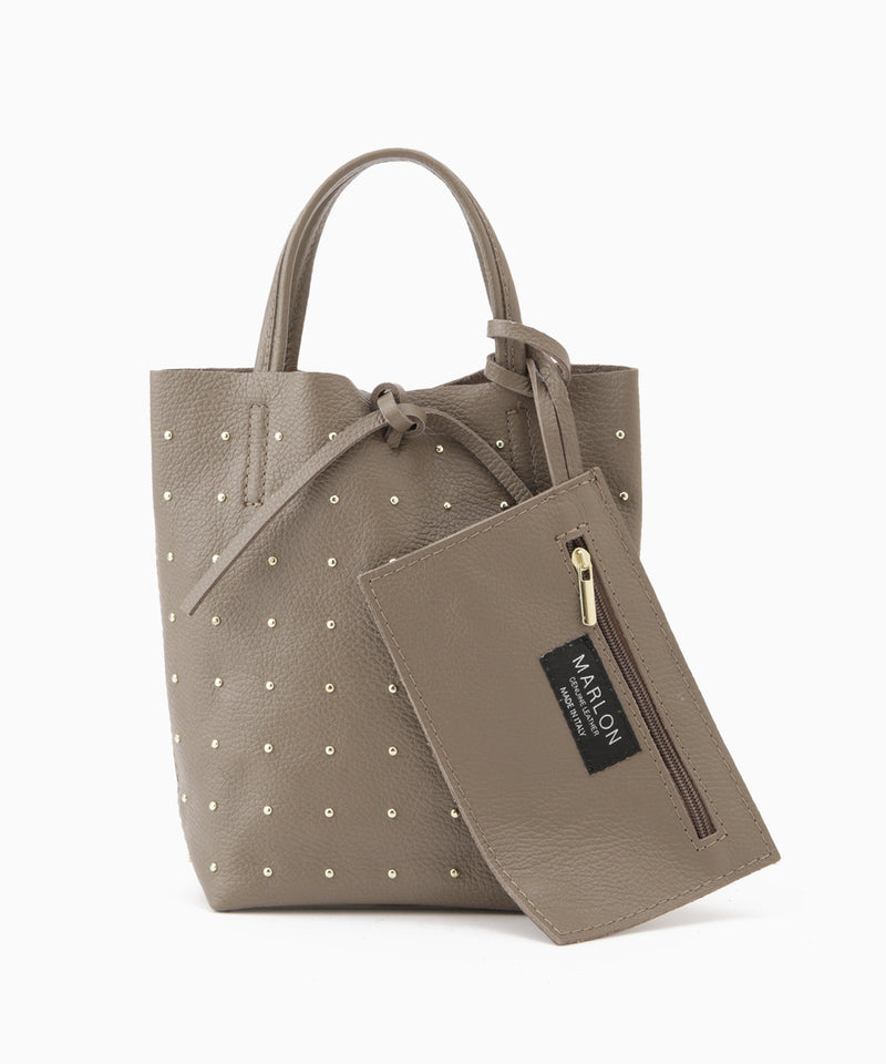 インナーのない軽量仕様。大きなポーチがついて、カギや小物などもすっきりと収納。ポーチはバッグに入れても、チャームのように出してもOK。おしゃれと実用を兼ねるデザインはイタリアならでは。
